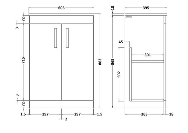 Nuie Athena 600mm Floor Standing Charcoal Black 2 Door Vanity Unit with Basin by Ultra