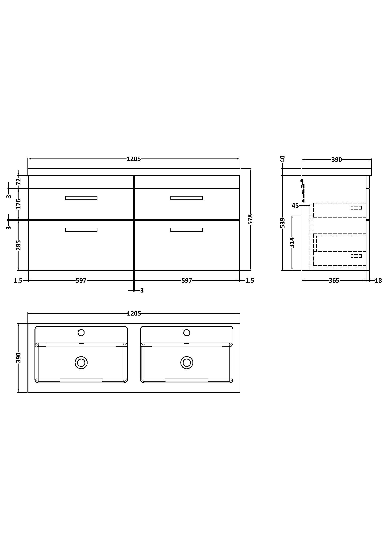 1200mm Wall Hung Cabinet With Double Basin by Ultra