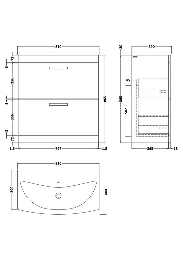 Nuie Athena 800mm Charcoal Black 2 Drawer Floor Standing Vanity Unit With 1 Tap Hole Basin by Ultra