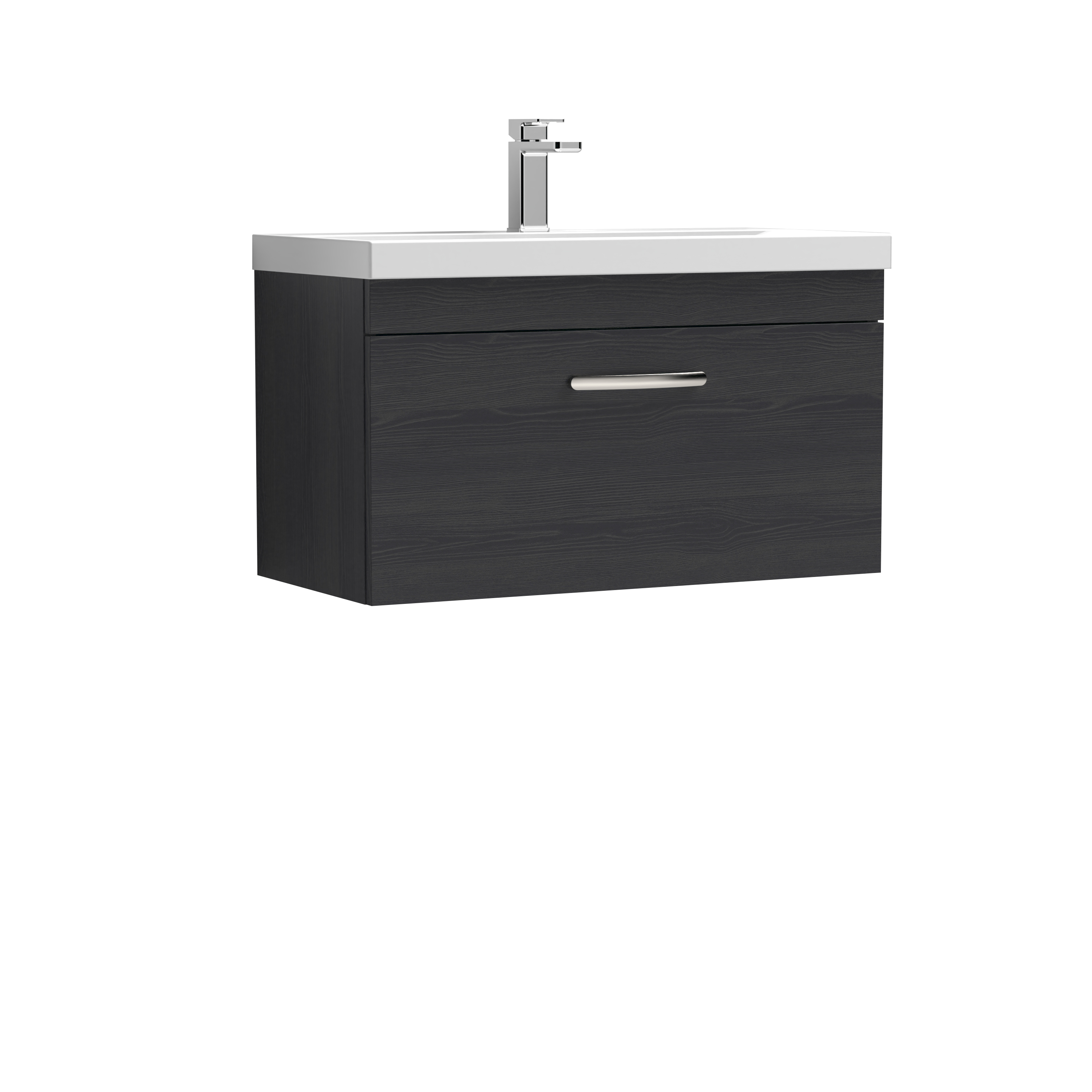 Nuie Athena 800mm Charcoal Black Wall Hung Single Drawer Vanity Unit With 1 Tap Hole Basin