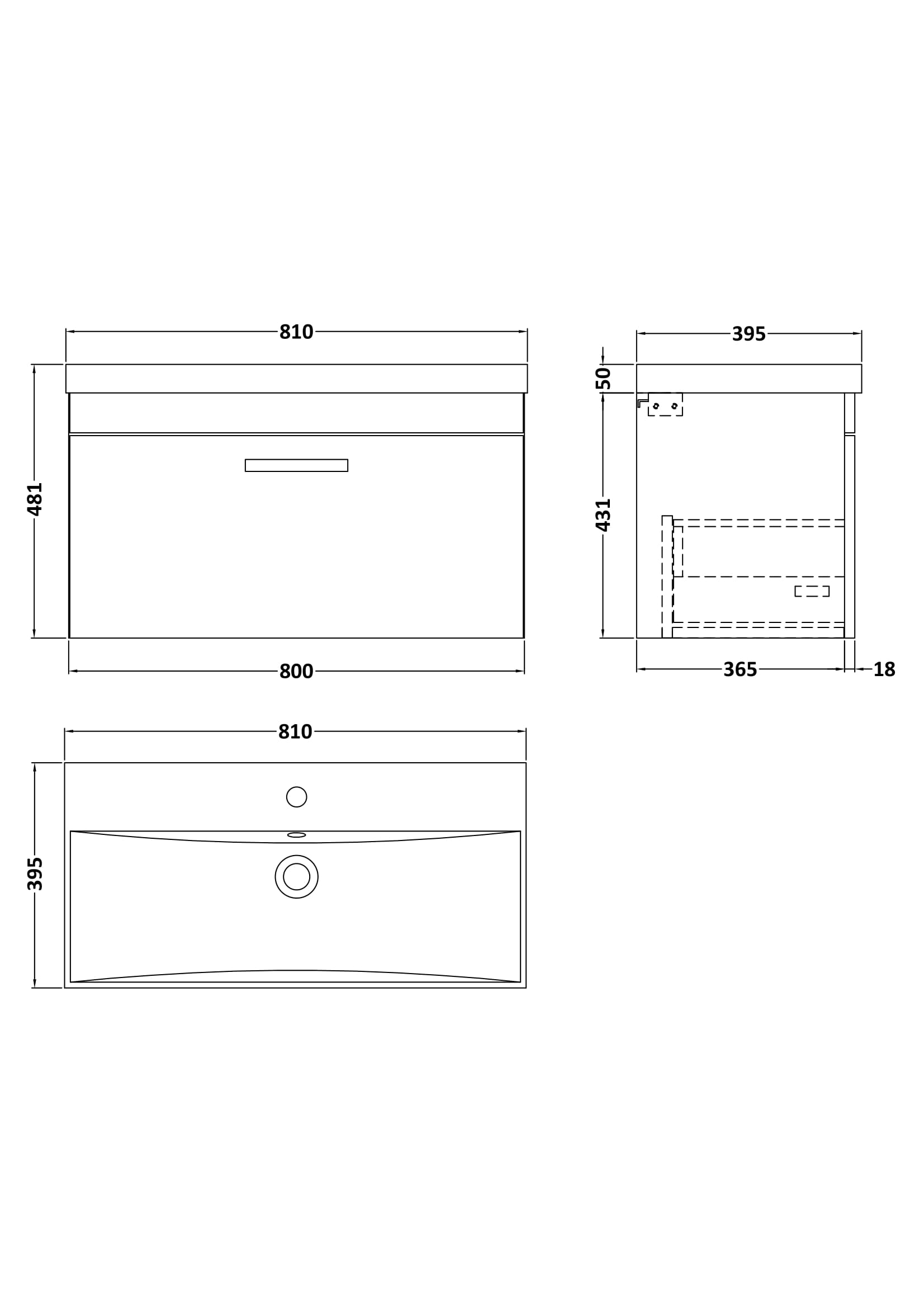Nuie Athena 800mm Charcoal Black Wall Hung Single Drawer Vanity Unit With Basin