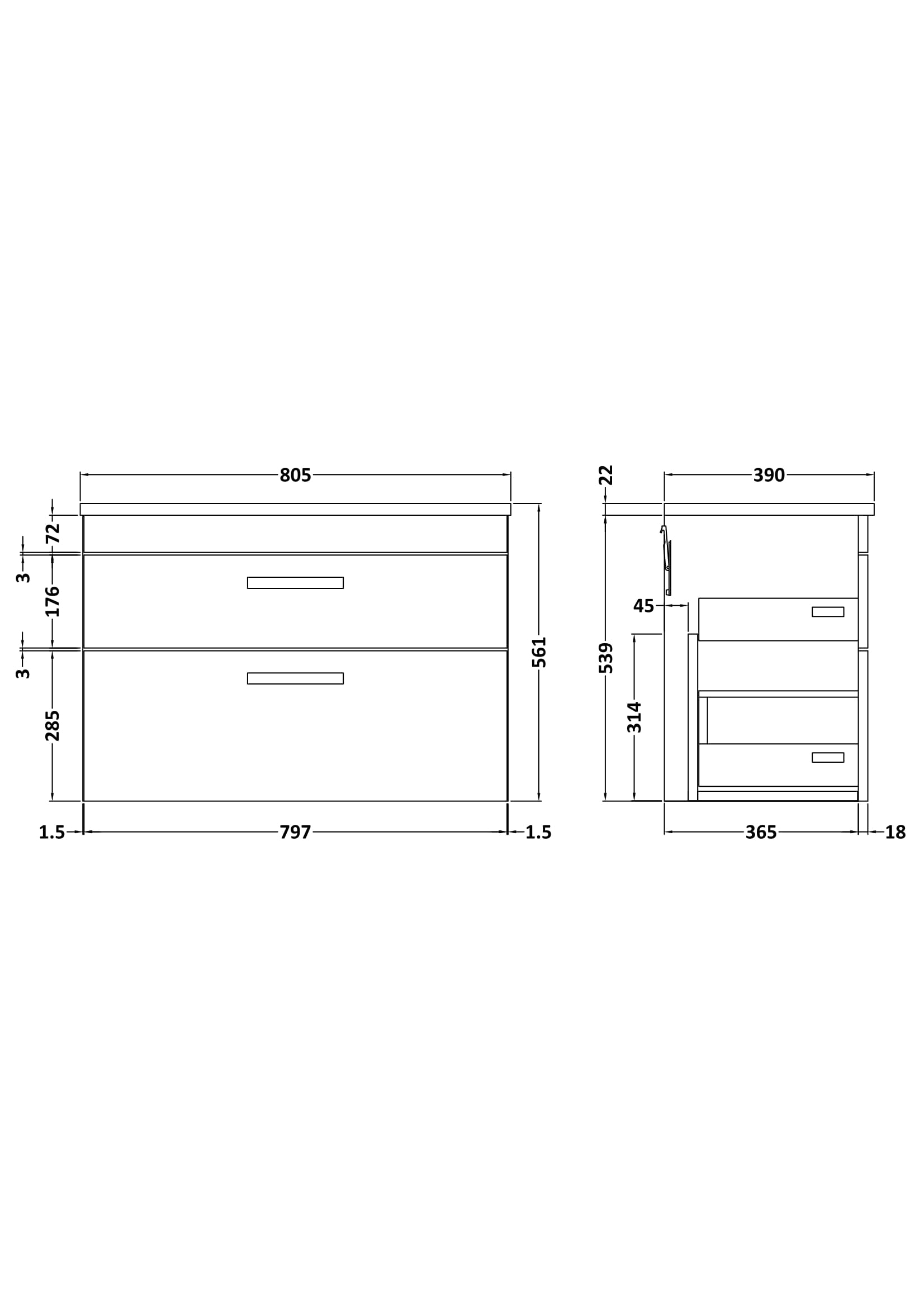 Product Width: 805 mm