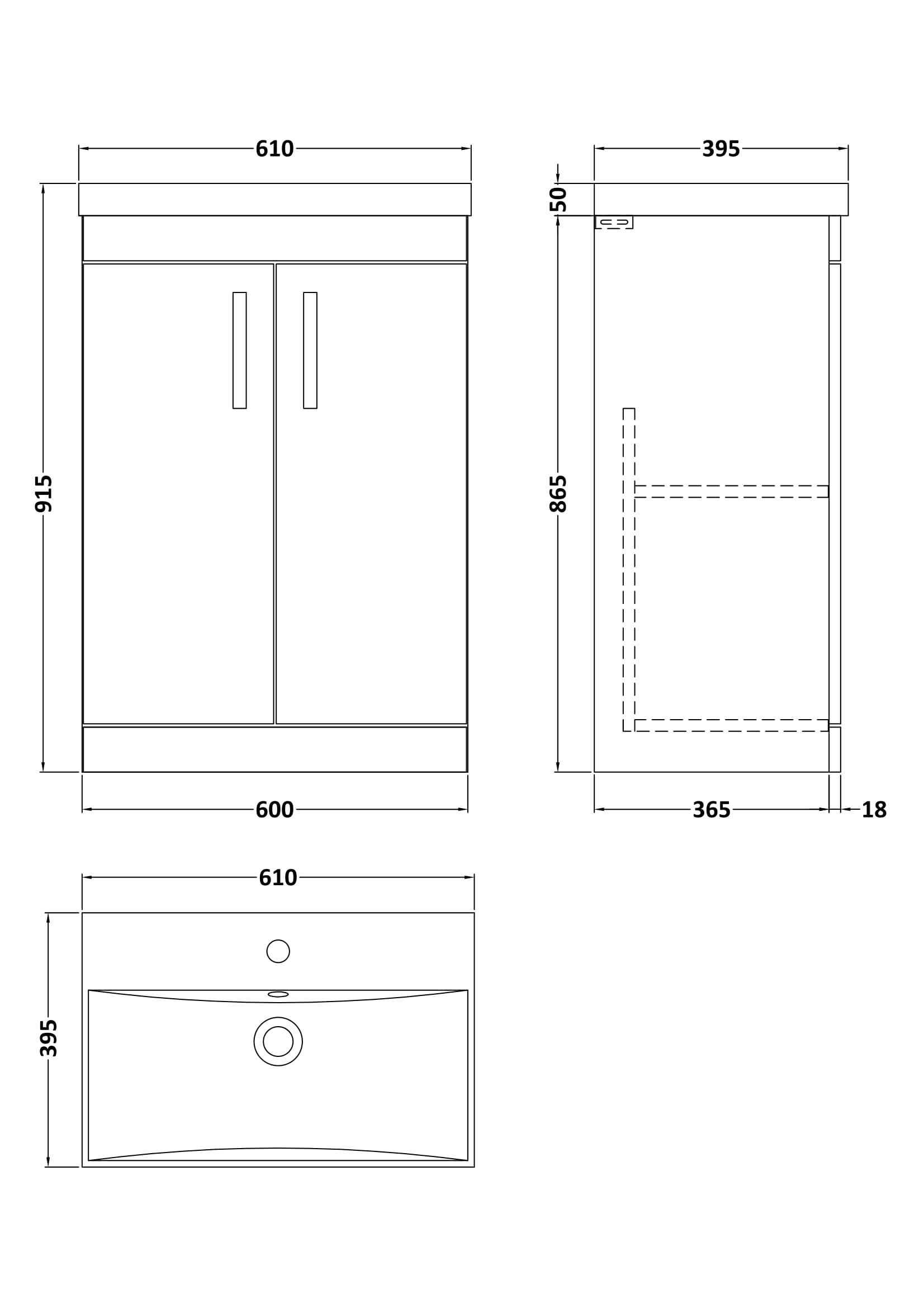 Nuie Athena 600mm Floor Standing 2 Door Vanity Unit With 1 Tap Hole Basin by Ultra
