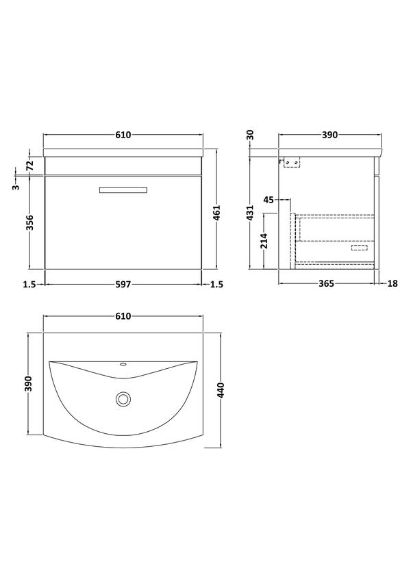 This sleek gloss grey finish compliments any modern bathroom and creates a designer look.