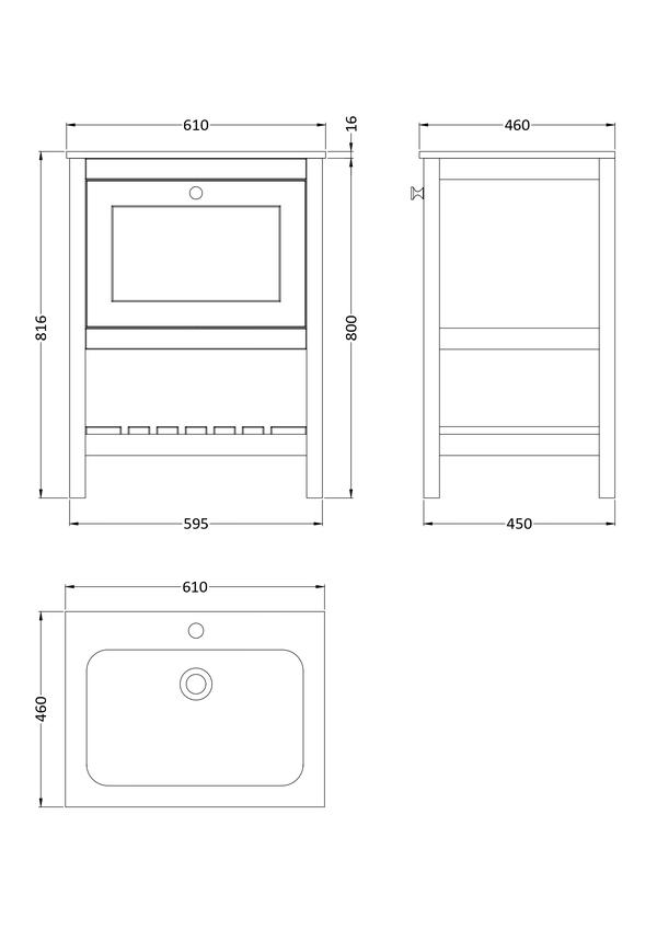 Bexley Floor Standing 1 Drawer Vanity & 1 Tap Hole Stone Basin, 600mm - Cool Grey