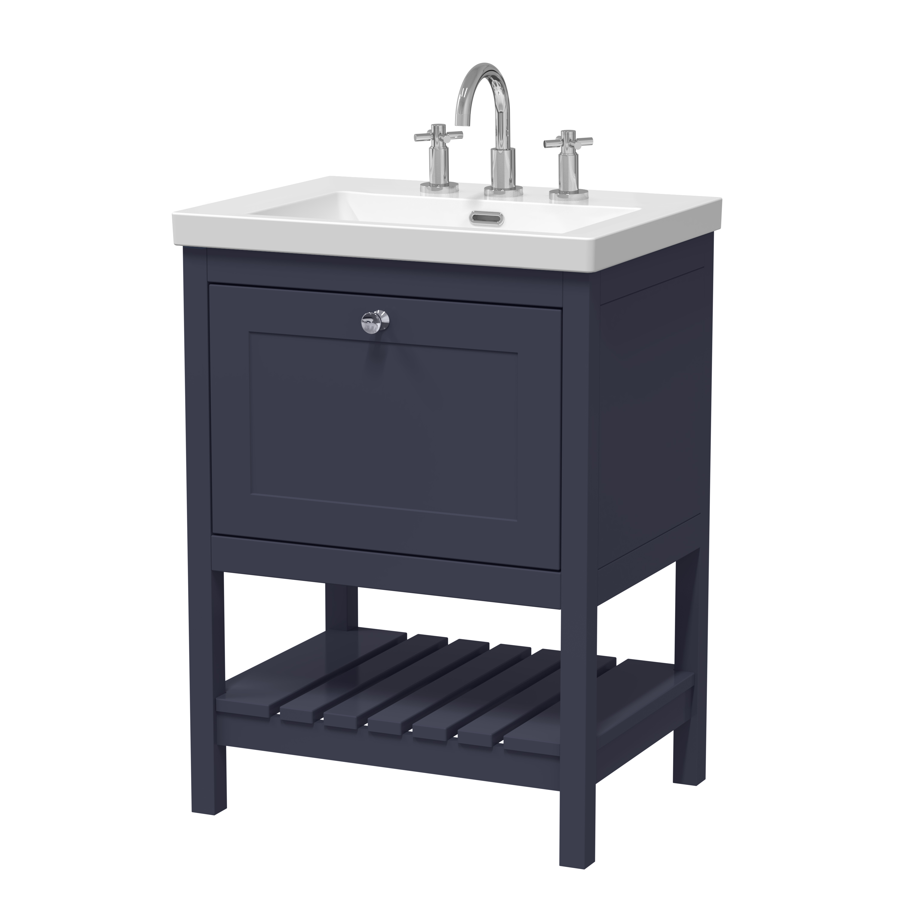 Hudson Reed Bexley 600mm Indigo Blue Floor Standing 1 Drawer Vanity Unit with 3 Tap Hole Fireclay Basin by Ultra