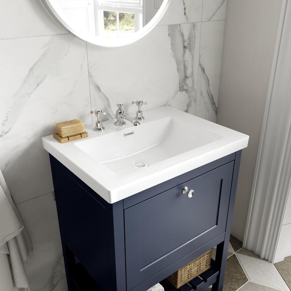 Hudson Reed Bexley 800mm Indigo Blue Floor Standing Vanity Unit With 3 Tap Hole Fireclay Basin