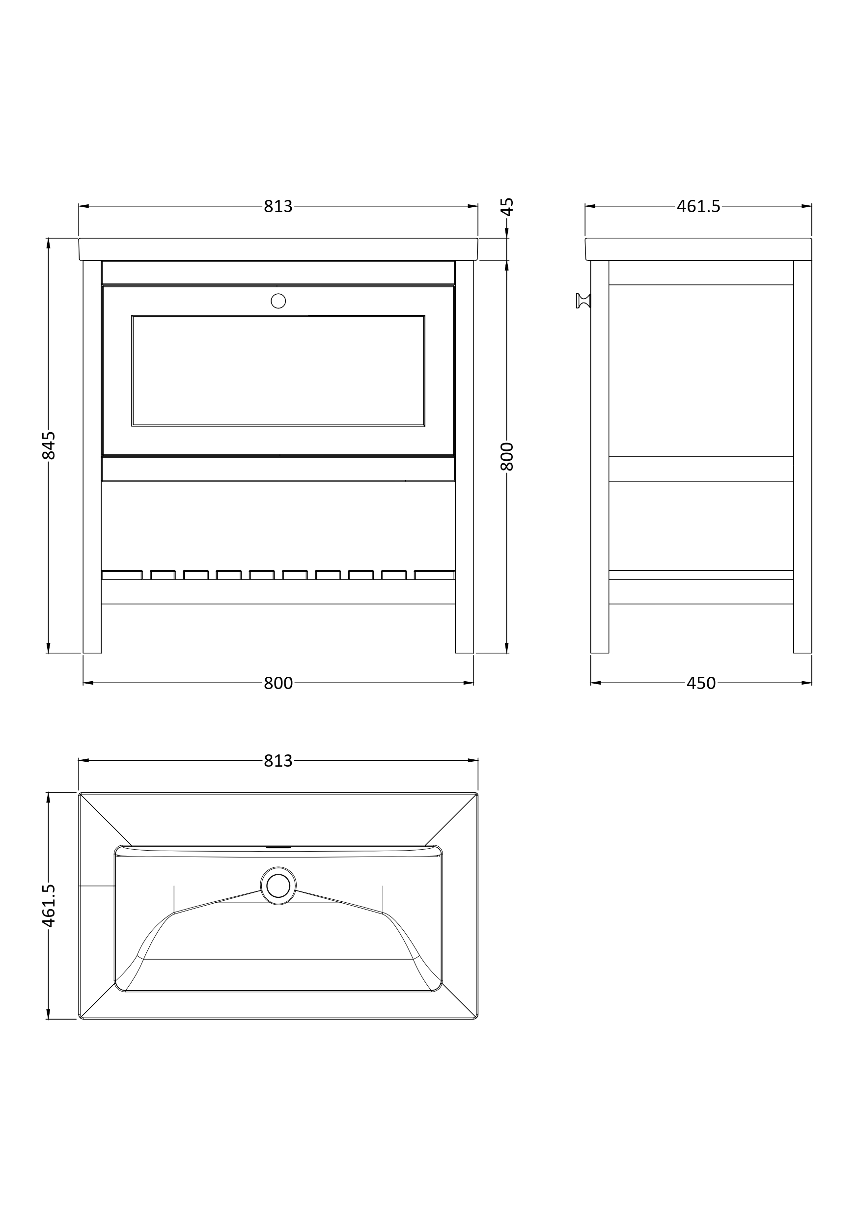 Bexley Floor Standing 1 Drawer Vanity & 0 Tap Hole Contemporary Fireclay Basin, 800mm - Fern Green