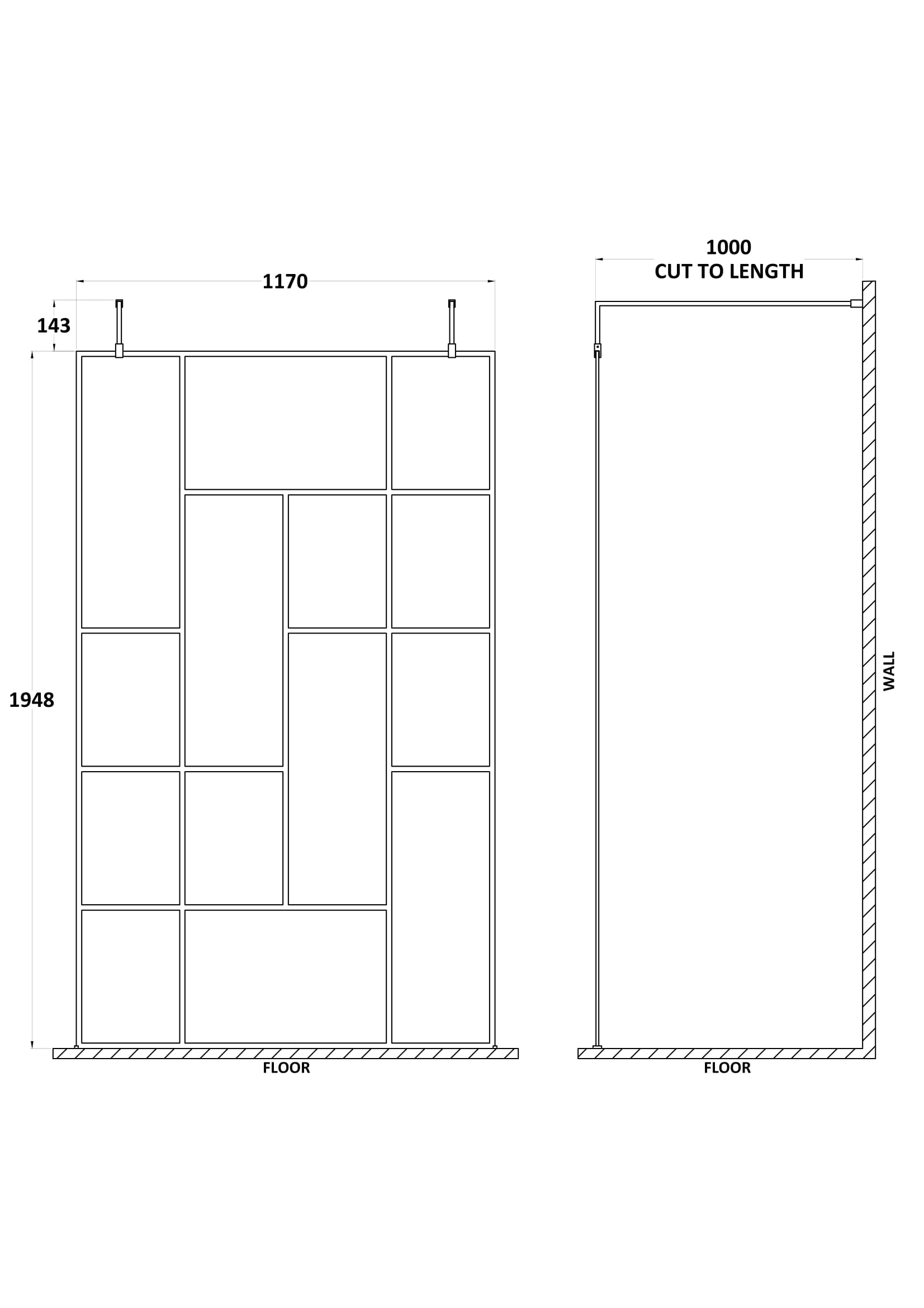1200mm Abstract Frame Wetroom Screen with Support Bars
