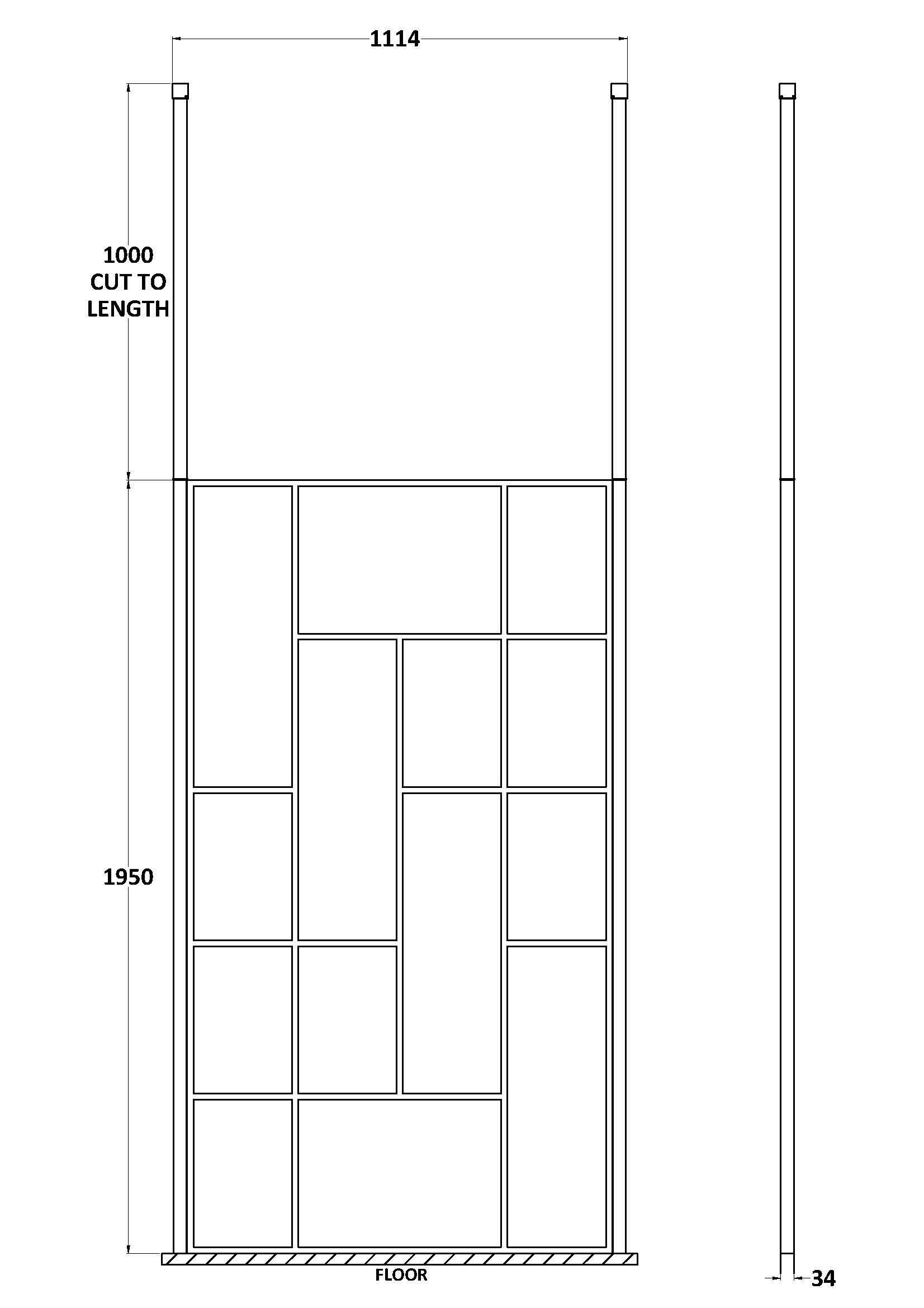 1100mm Abstract Frame Wetroom Screen with Ceiling Posts