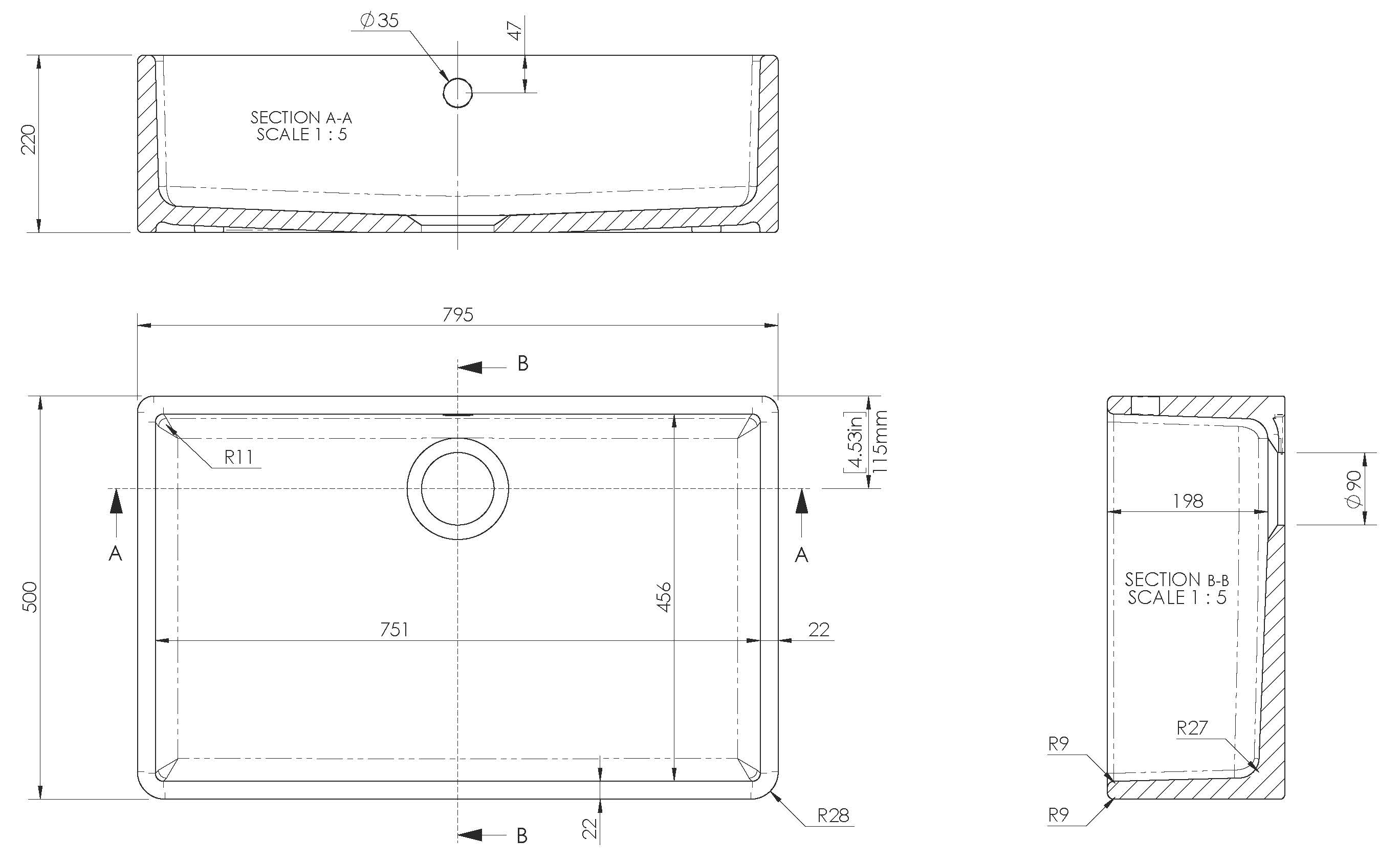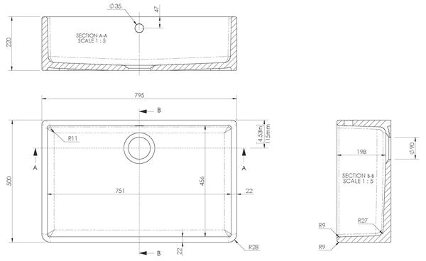Fireclay Butler Sink comes with Overflow 795 x 500 x 220mm