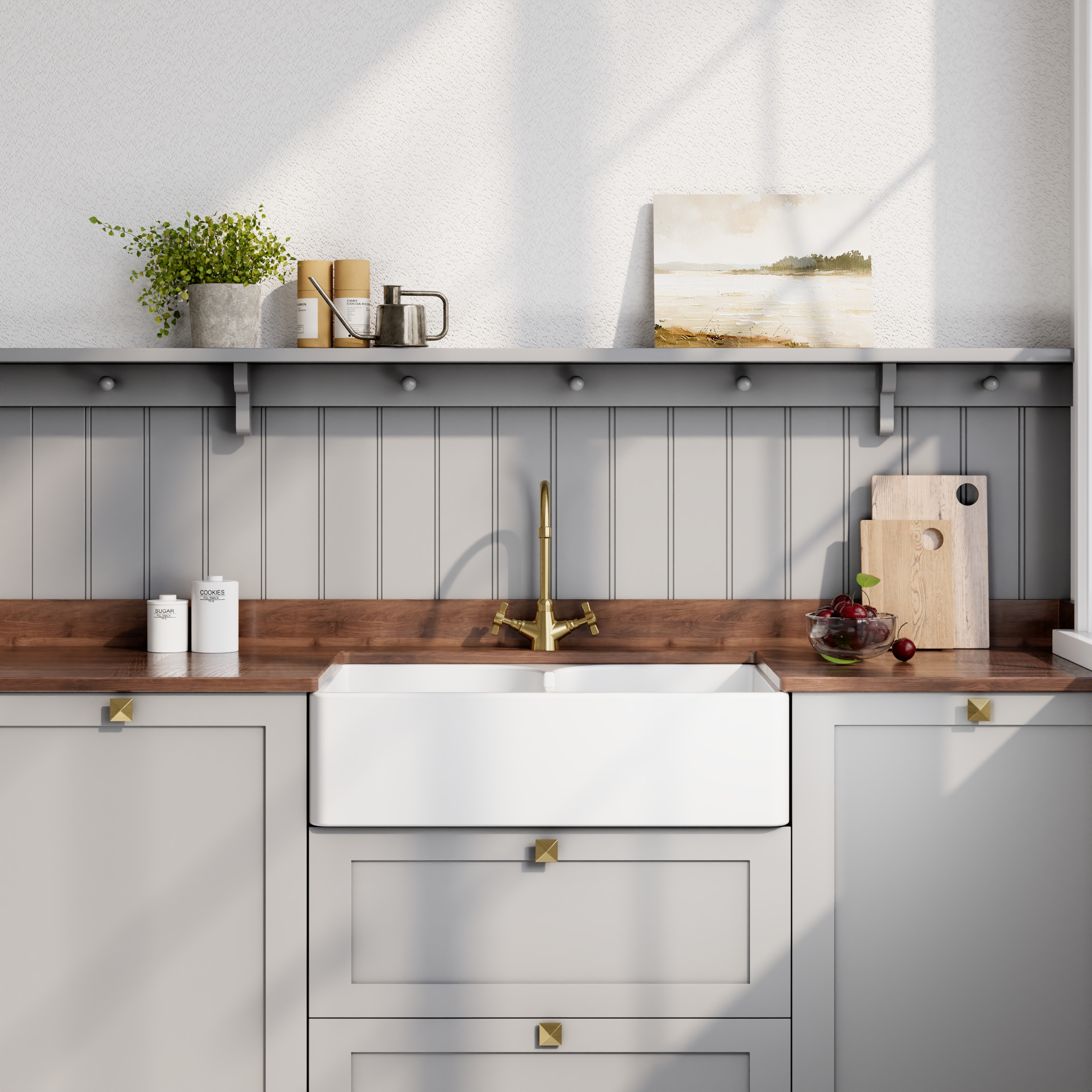 Fireclay Butler Sink Stepped Weir 795 x 500 x 220mm by Ultra