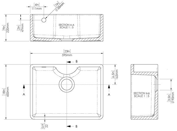 Fireclay Butler Sink comes with Overflow and Tap Ledge 595 x 450 x 220mm