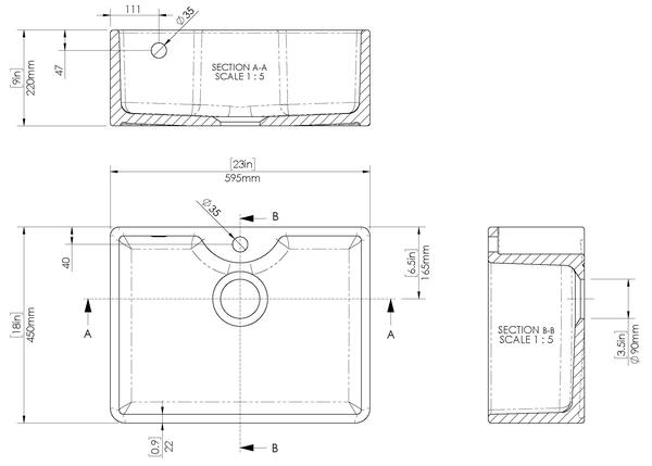 Fireclay Butler Sink comes with Overflow and Tap Ledge 595 x 450 x 220mm