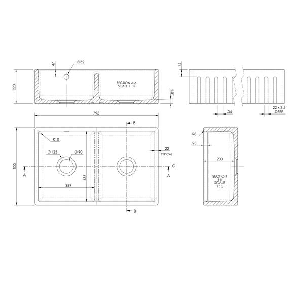 Butler Sink Deco Stepped Weir & Overflow 795x500x220 by Ultra