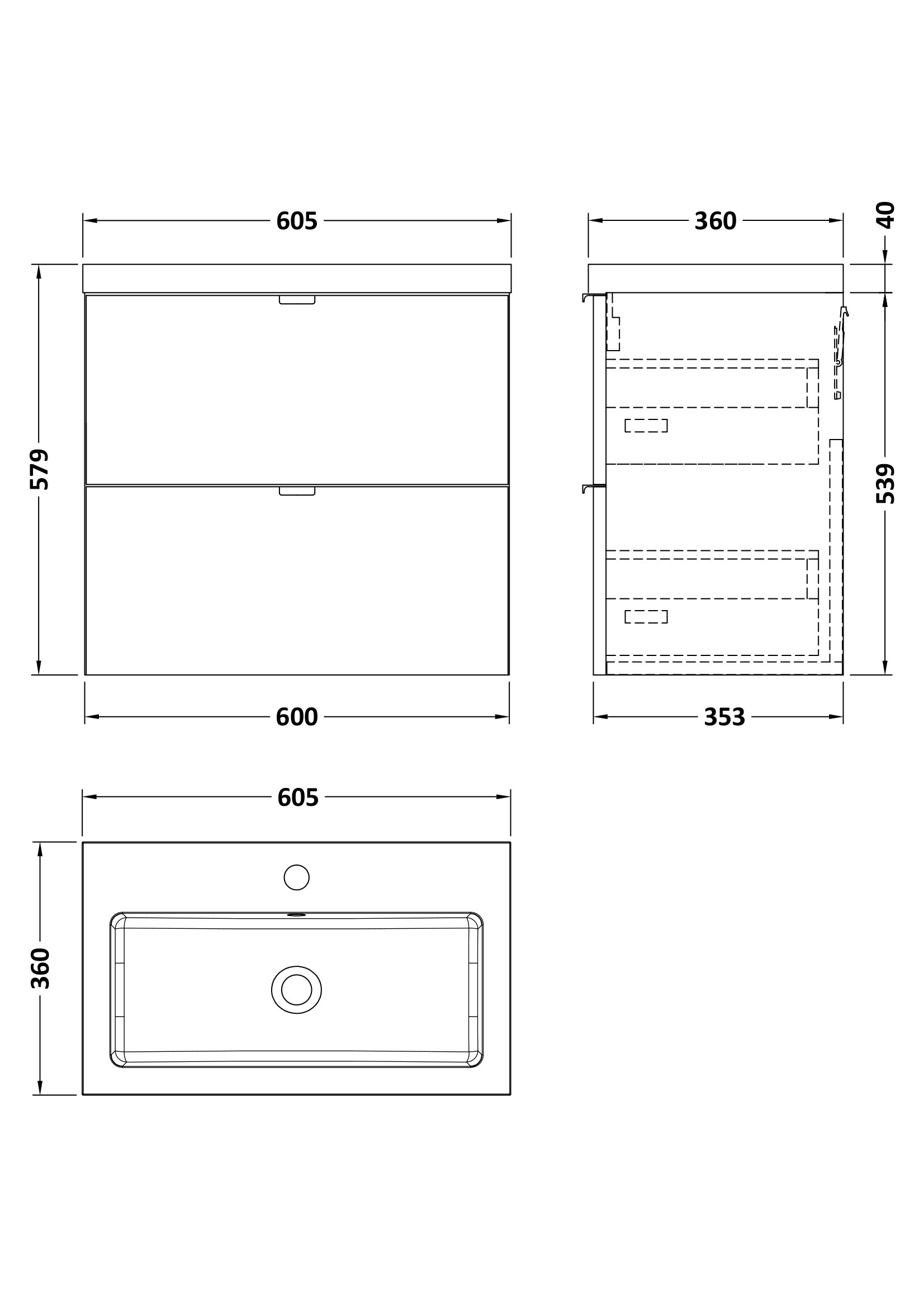 600mm Wall Hung 2-Drawer Unit & Basin by Hudson Reed
