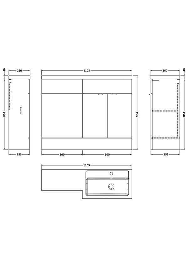 Hudson Reed Fusion 1100mm Right Hand Pebble Grey Combination Unit With Basin by Ultra