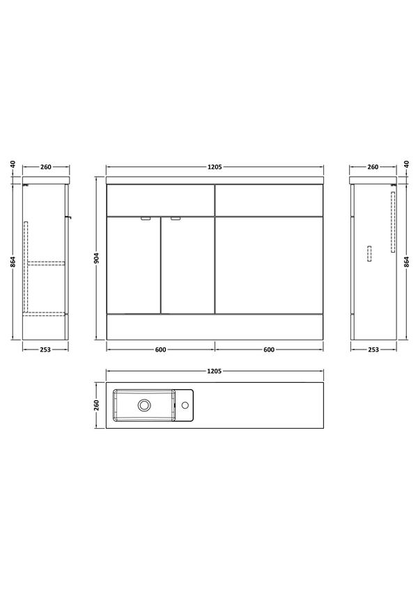 Hudson Reed Fusion 1200mm x 255mm Pebble Grey Combination Vanity Unit by Ultra