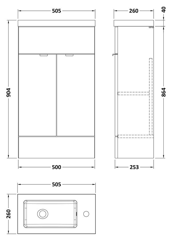 Hudson Reed Fusion 500mm Pebble Grey Vanity Unit & Basin With Handles