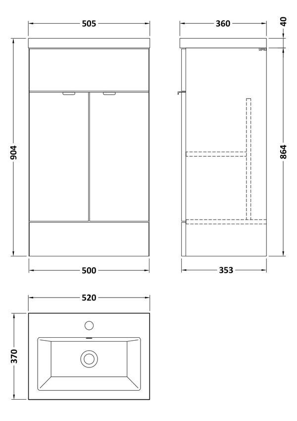 Hudson Reed Fusion 500mm Pebble Grey Vanity Unit & Basin With Handles