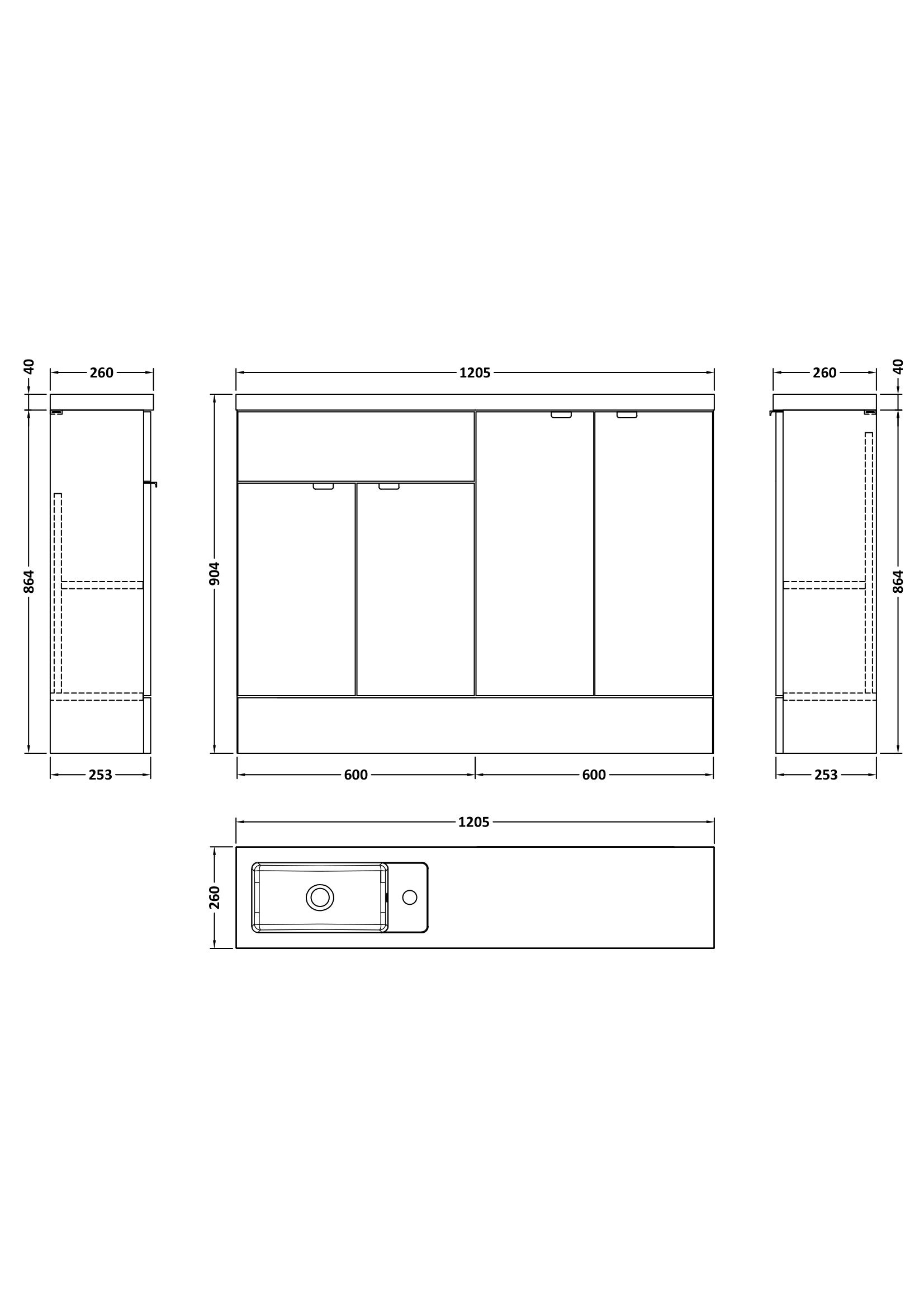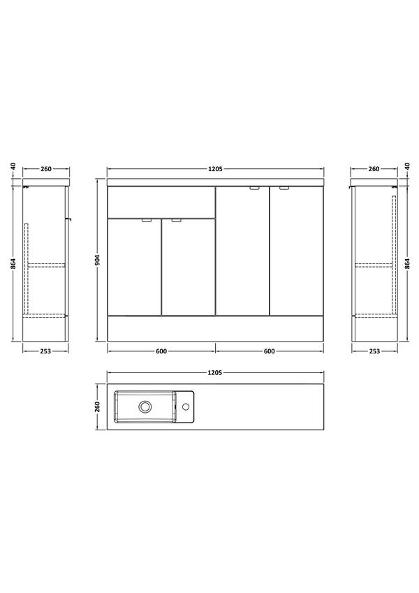 Hudson Reed Fusion 1205mm Compact Pebble Grey Combination Vanity Unit
