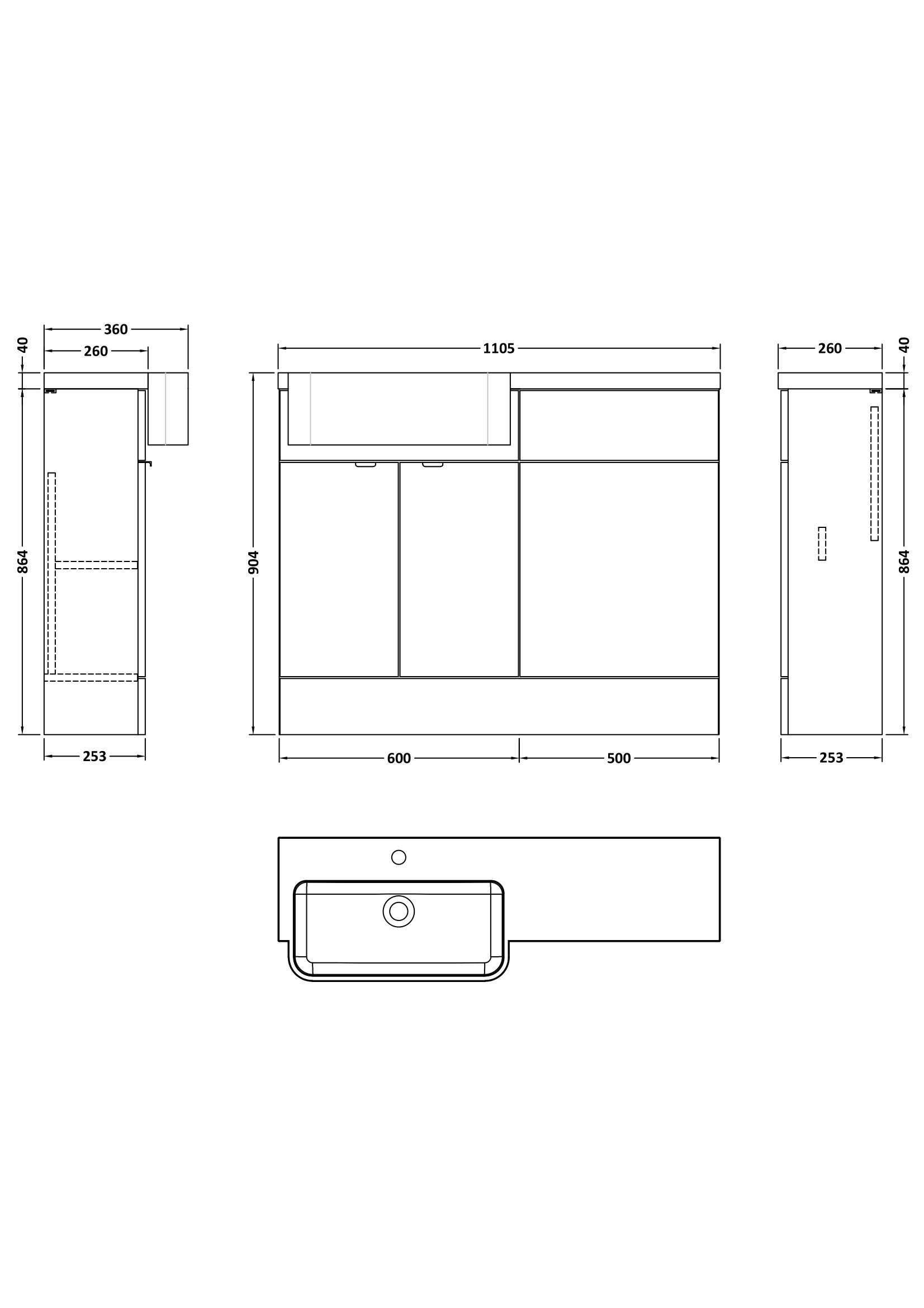 Hudson Reed Fusion 1100mm Pebble Grey Left Hand Semi Recessed Combination Unit with Soft Close Doors & Handles by Ultra
