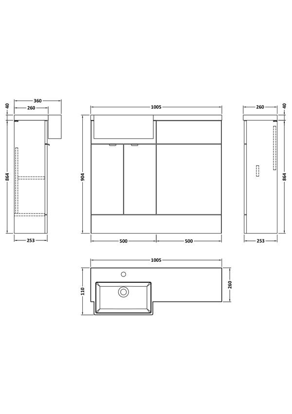 Hudson Reed Fusion 1000mm Pebble Grey Left Hand Combination Unit with Semi Recessed Basin with Soft Close Doors by Ultra
