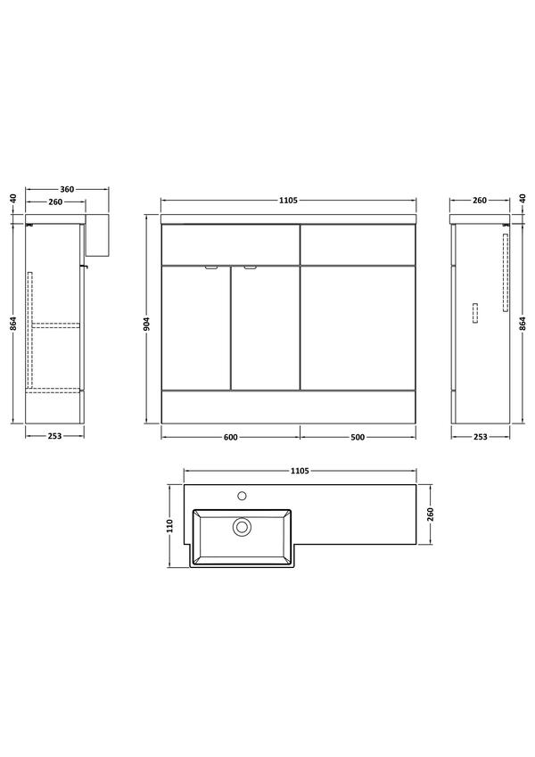 Hudson Reed Fusion 1100mm Pebble Grey Combination Unit & Left Hand Semi Recessed Basin Soft-Close Doors by Ultra