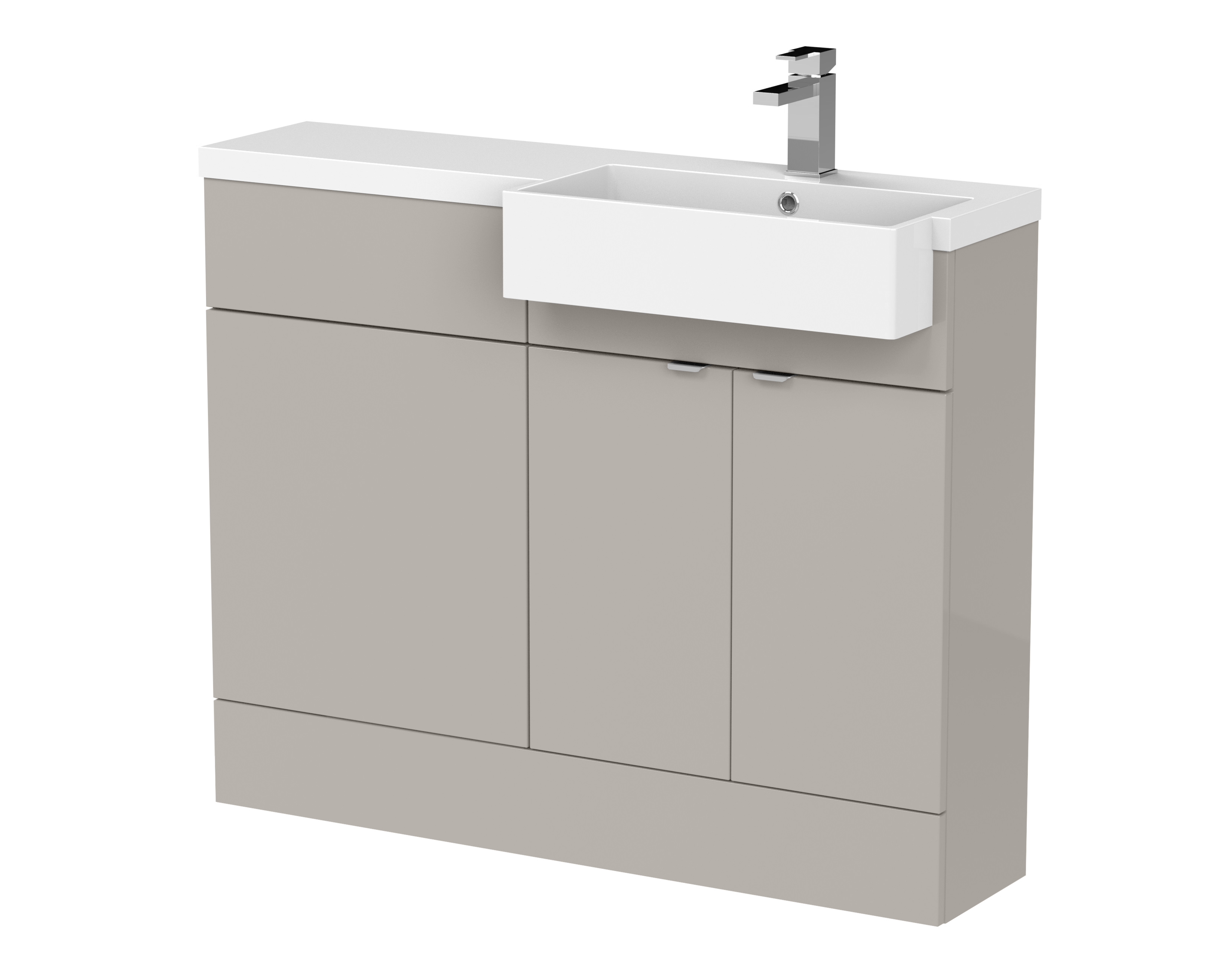 Hudson Reed Fusion 1100mm Pebble Grey Combination Unit & Right Hand Semi Recessed Basin Ready Assembled Soft Close by Ultra