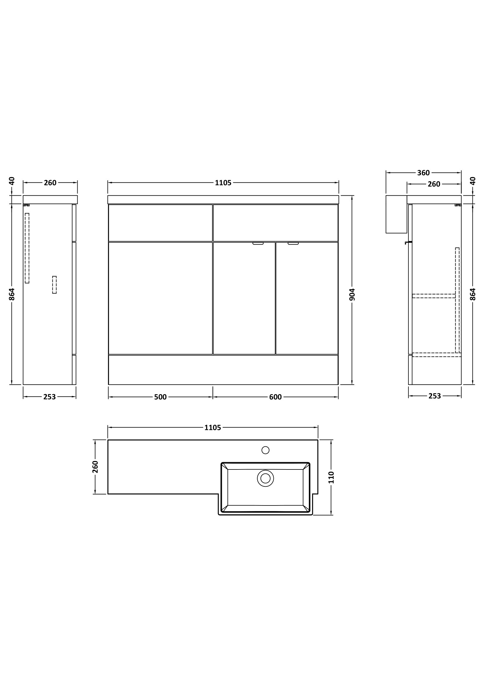 1100mm Combination Unit & Right Hand Semi Recessed Basin
