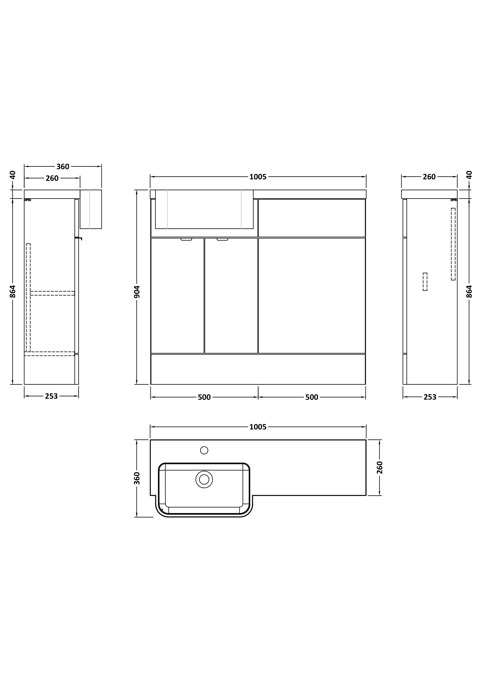 1000mm Combination Unit & Left Hand Semi Recessed Basin