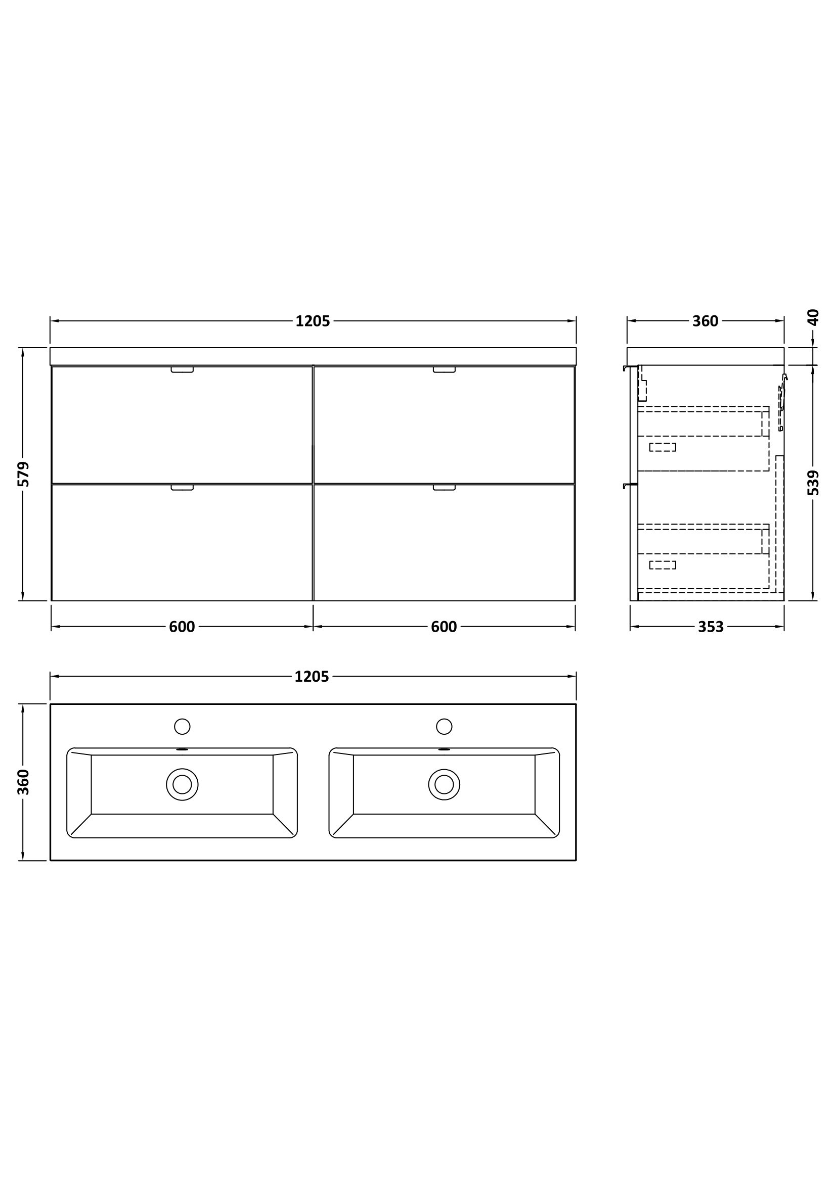 1200mm Vanity Unit & Double Ceramic Basin by Hudson Reed