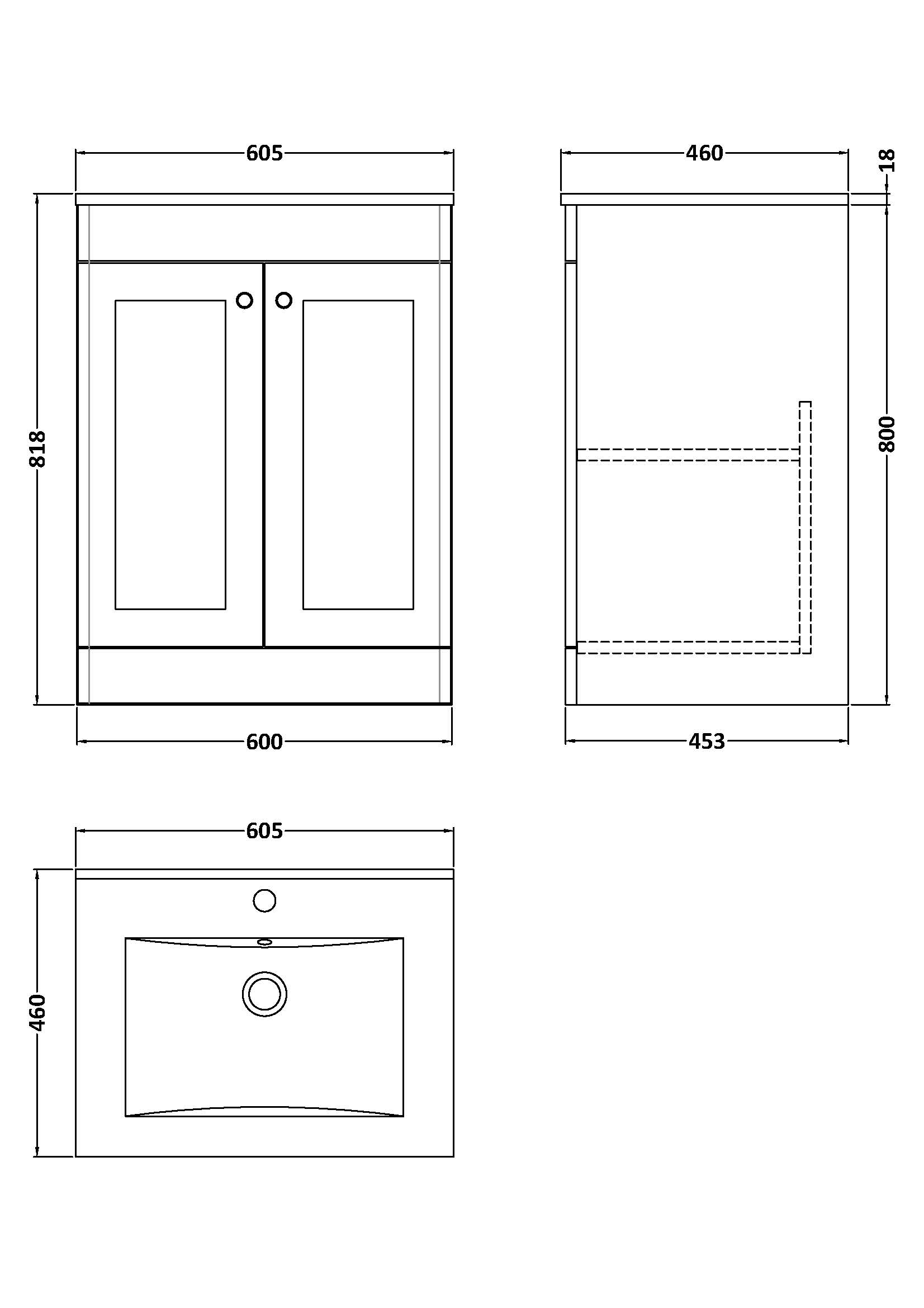 600mm Floor Standing 2-Door Vanity with Basin - 1 Tap Hole