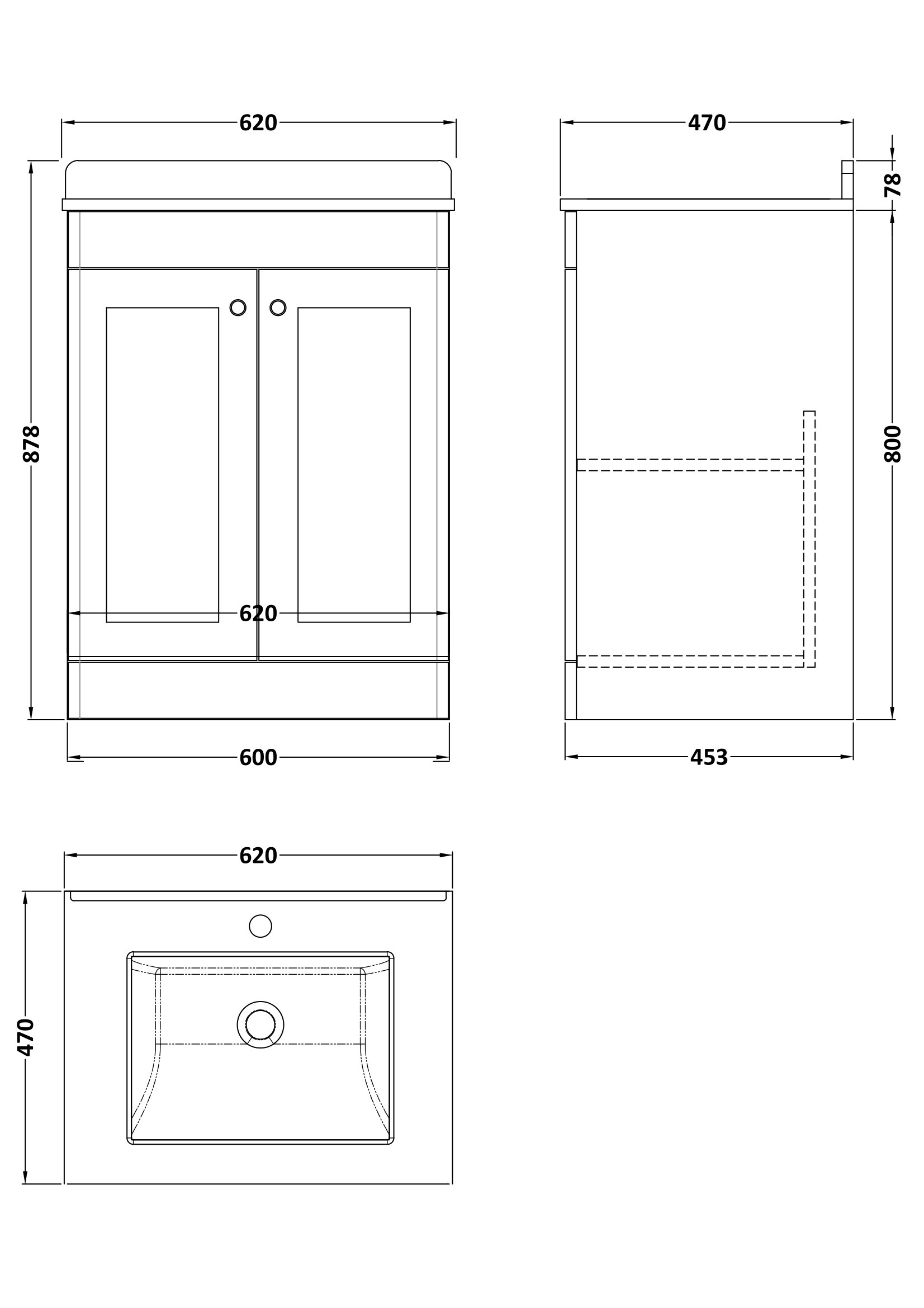 600mm Floor Standing 2 Door Vanity & Marble Top 1TH by Ultra
