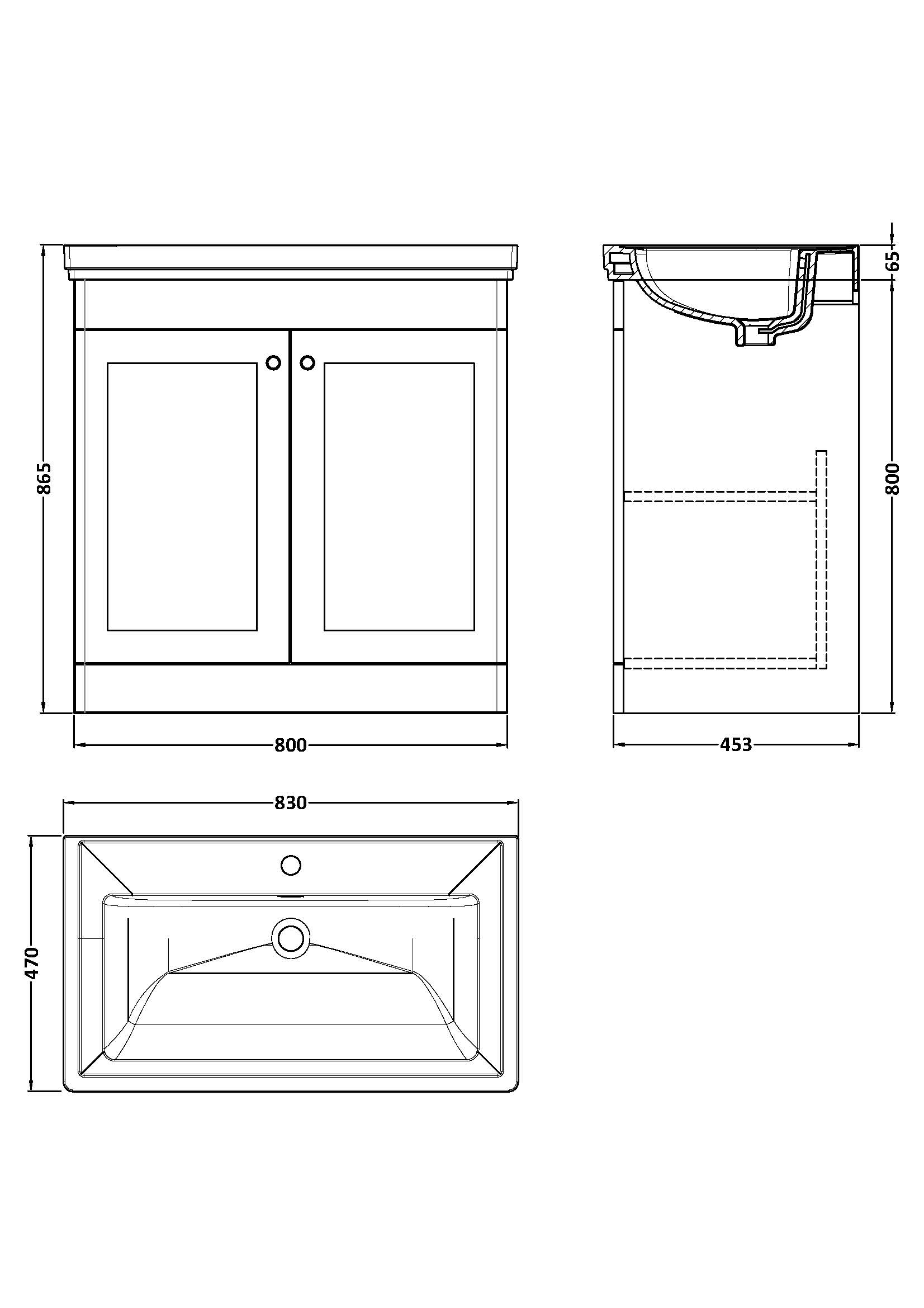 800mm Floor Standing 2-Door Vanity & Basin 1TH