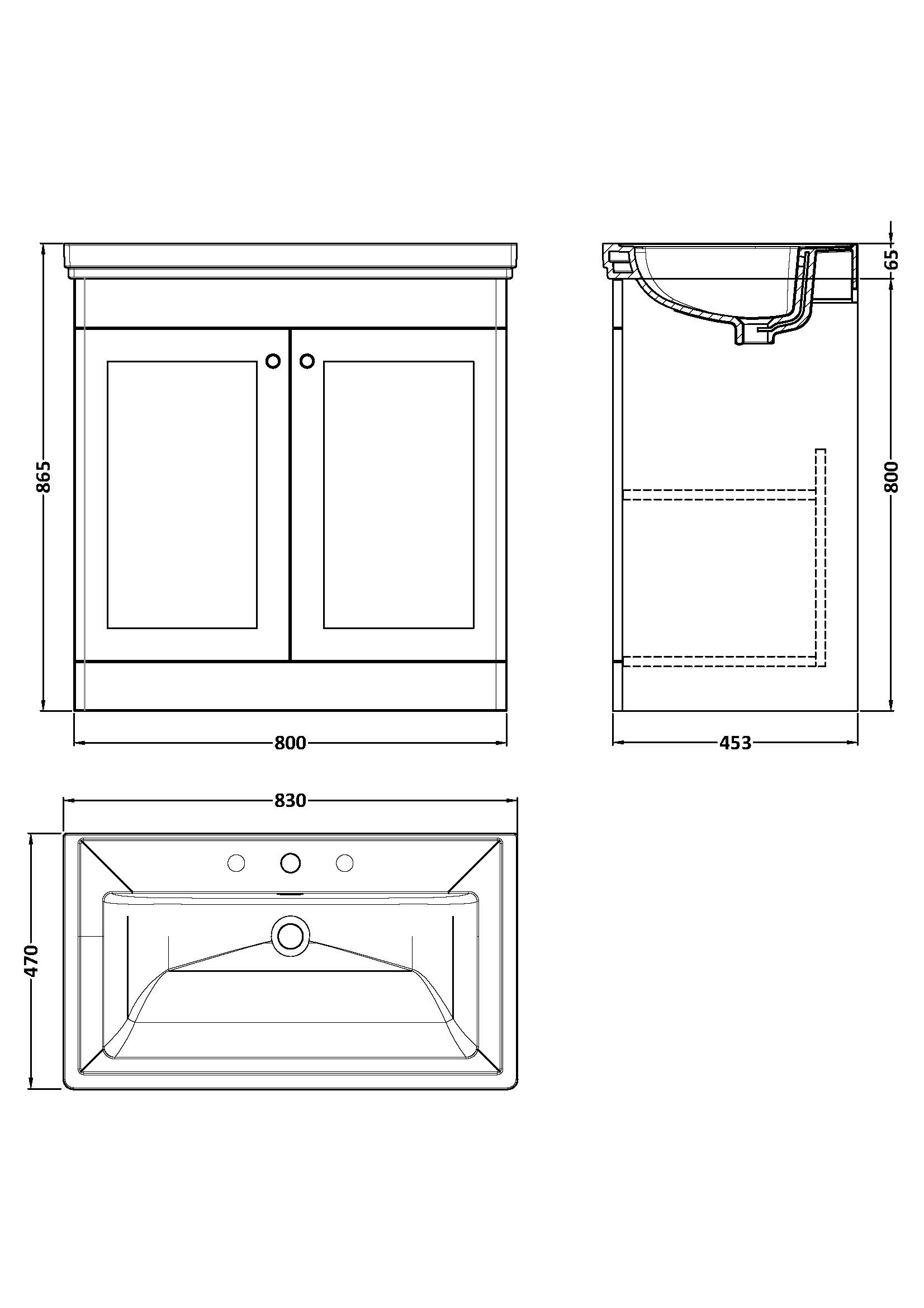 800mm Floor Standing 2-Door Vanity & Basin 3TH