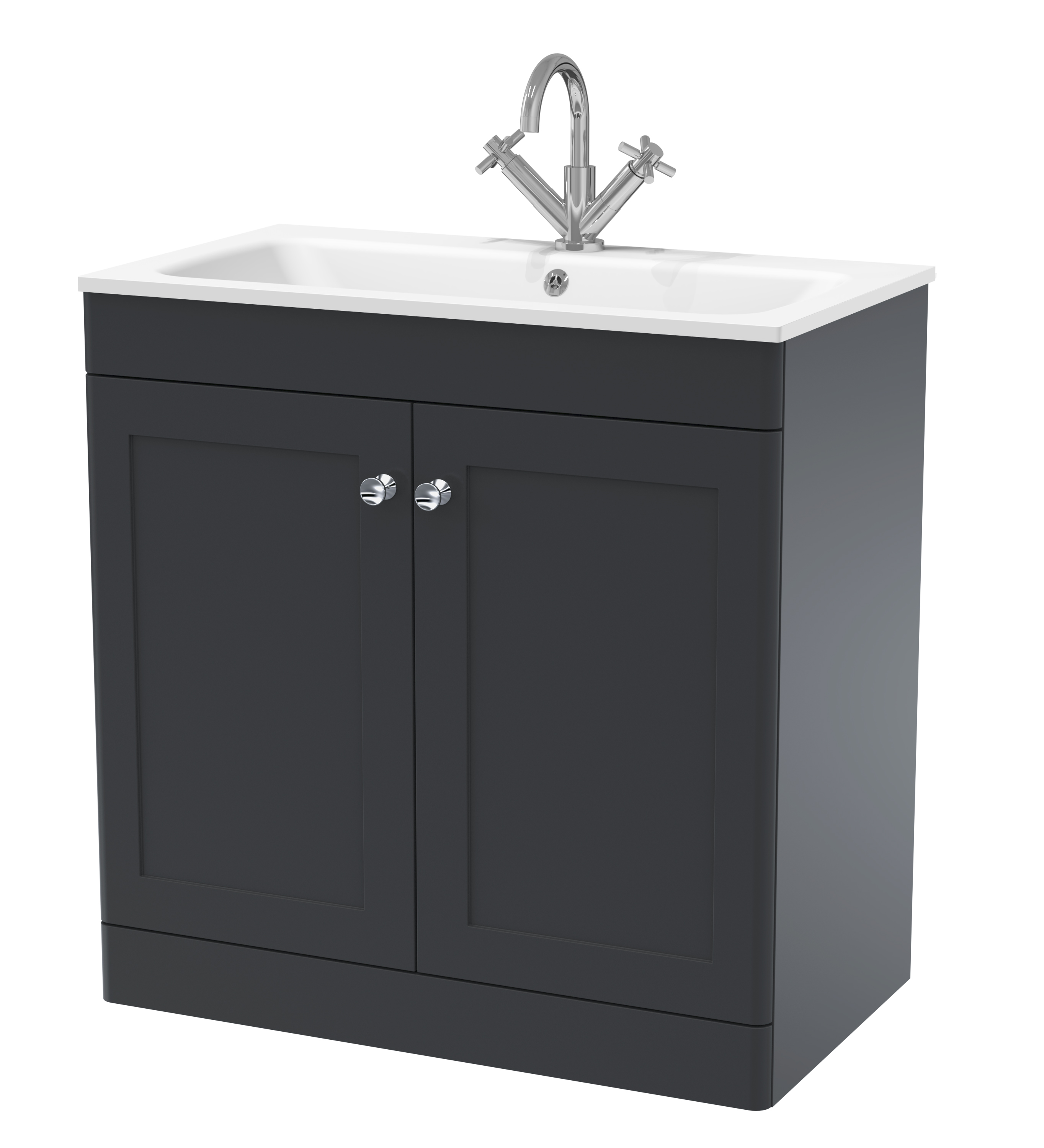 Classique Floor Standing 2 Door Vanity Basin Unit & 1 Tap Hole Stone Basin, 800mm