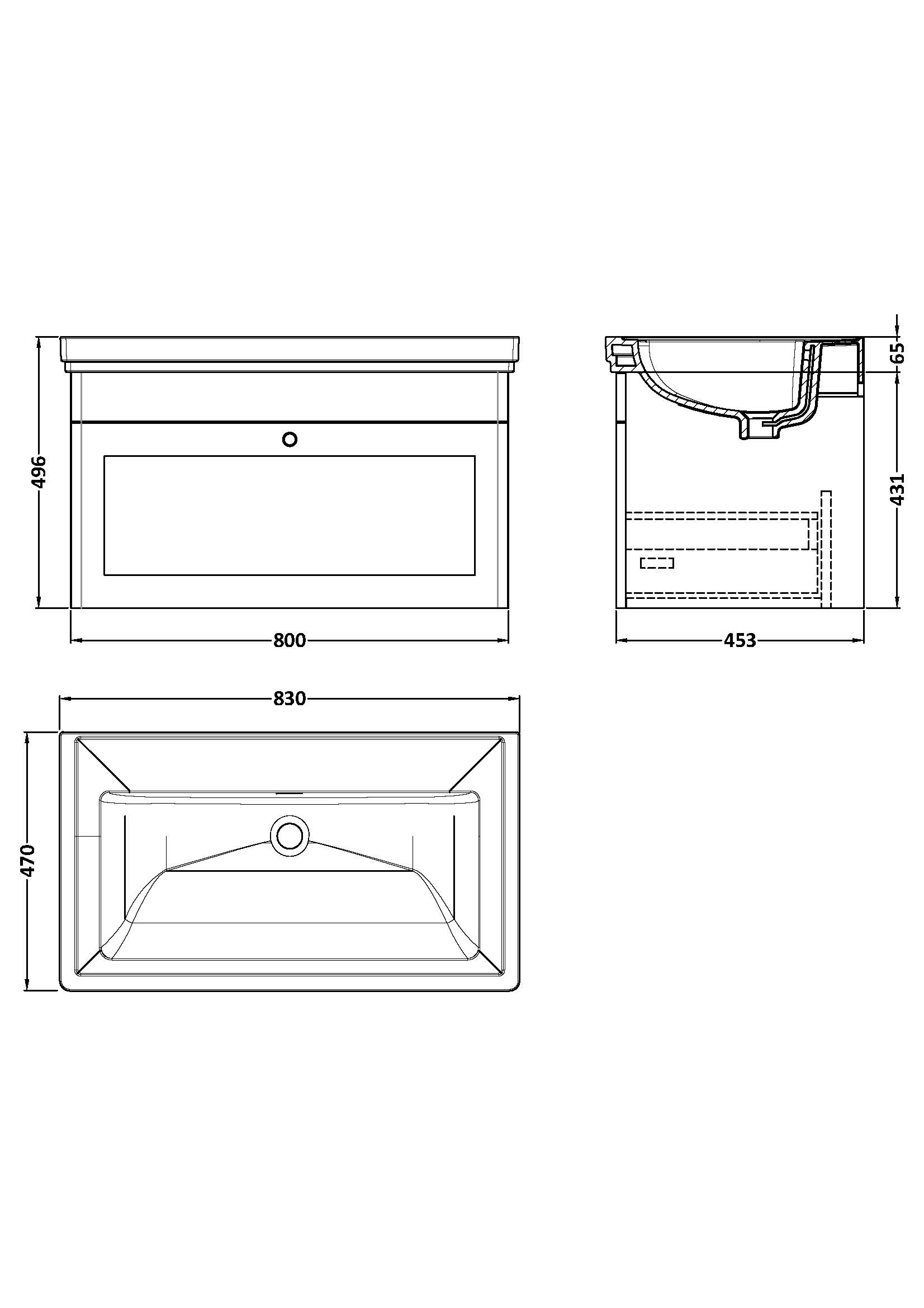 800mm Wall Hung 1 Drawer Vanity & Basin 0TH