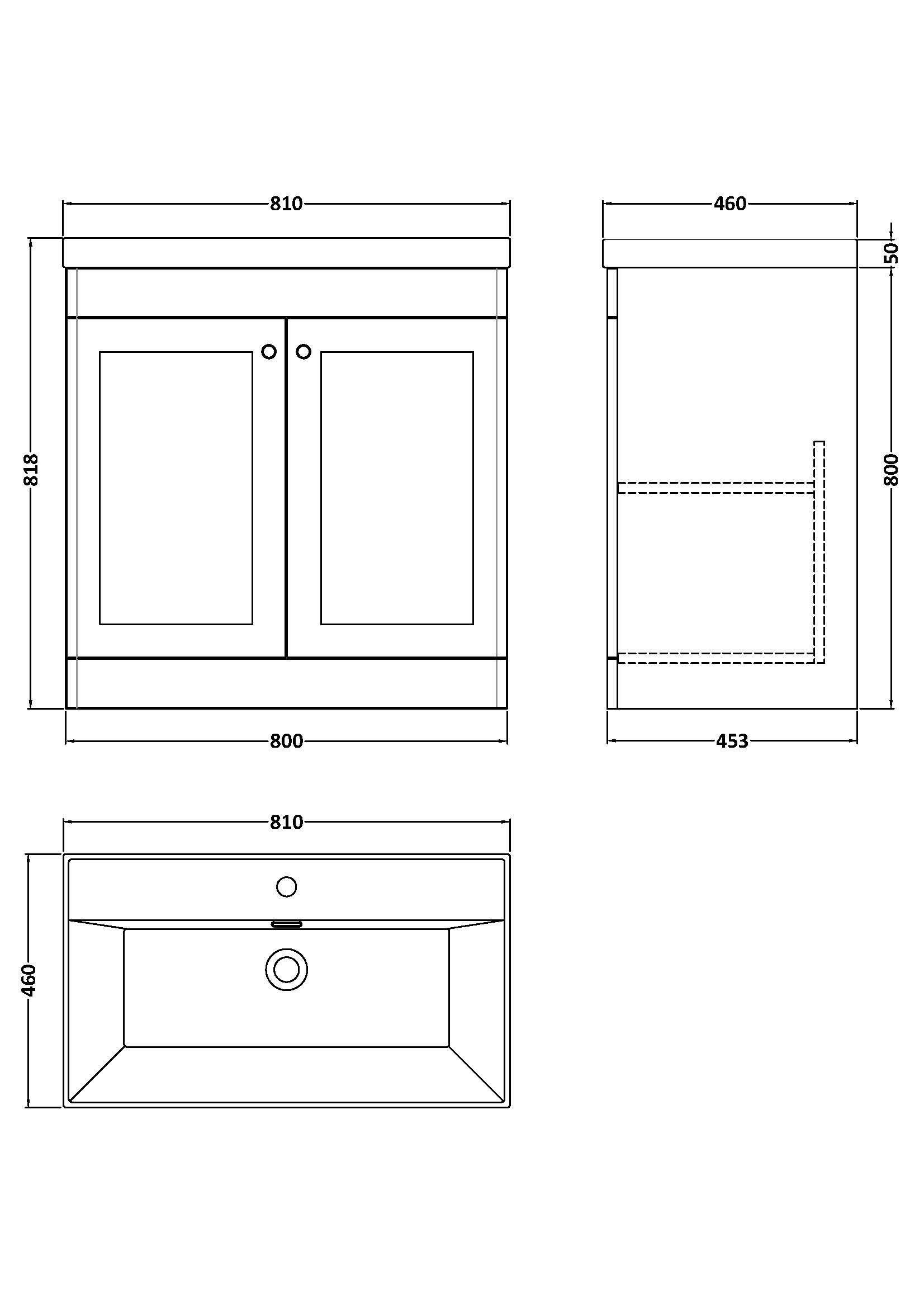 800mm Floor Standing 2-Door Vanity with Basin - 1 Tap Hole