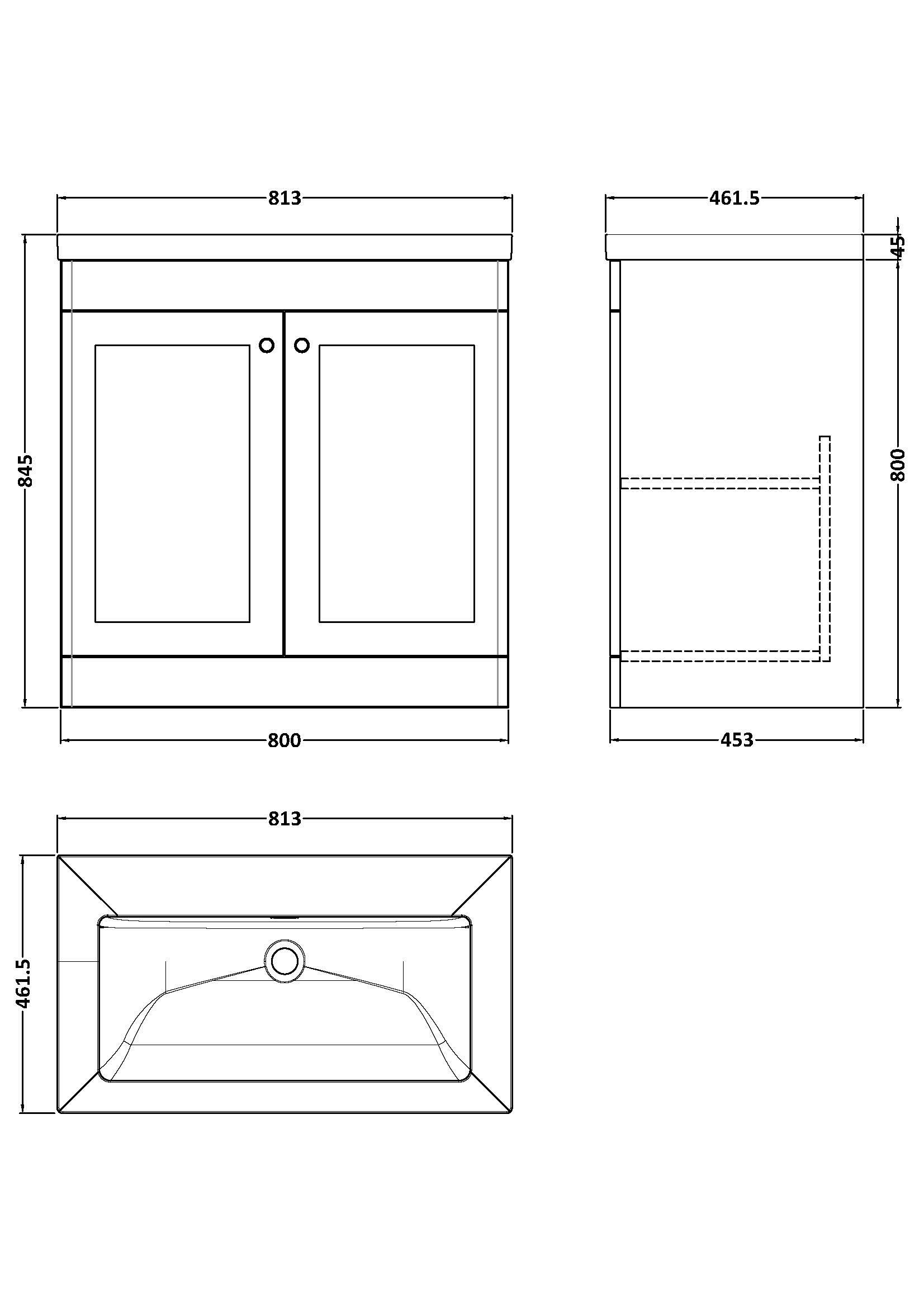 800mm Floor Standing 2-Door Vanity with Basin - 0 Tap Hole