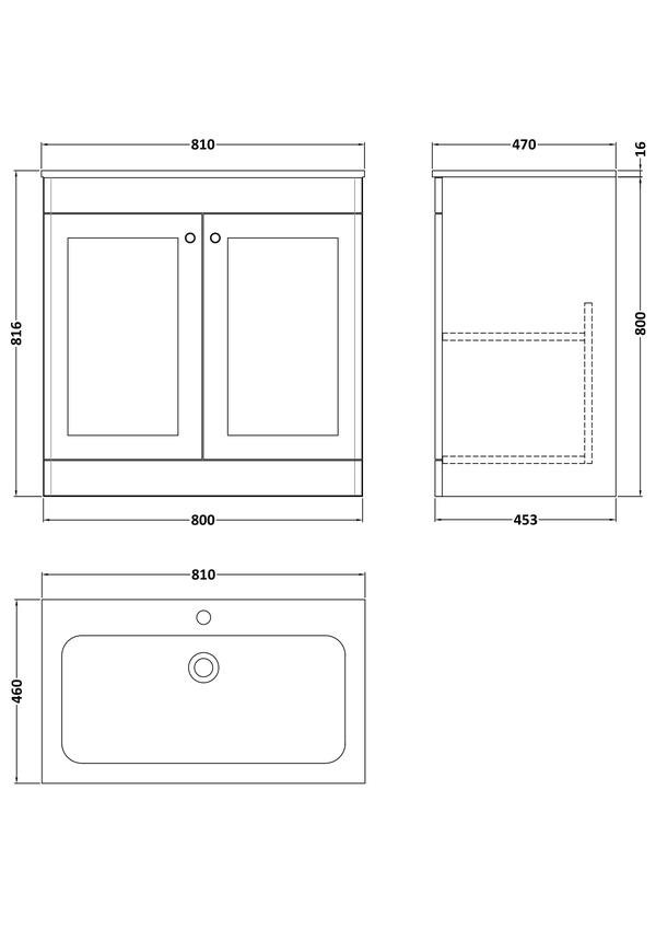 Classique Floor Standing 2 Door Vanity Basin Unit & 1 Tap Hole Stone Basin, 800mm