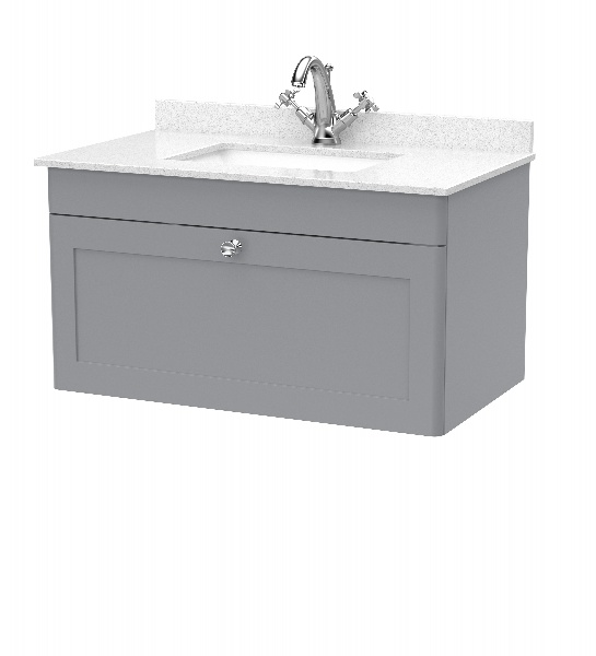 800mm Wall Hung 1 Drawer Vanity & Marble Top 1TH