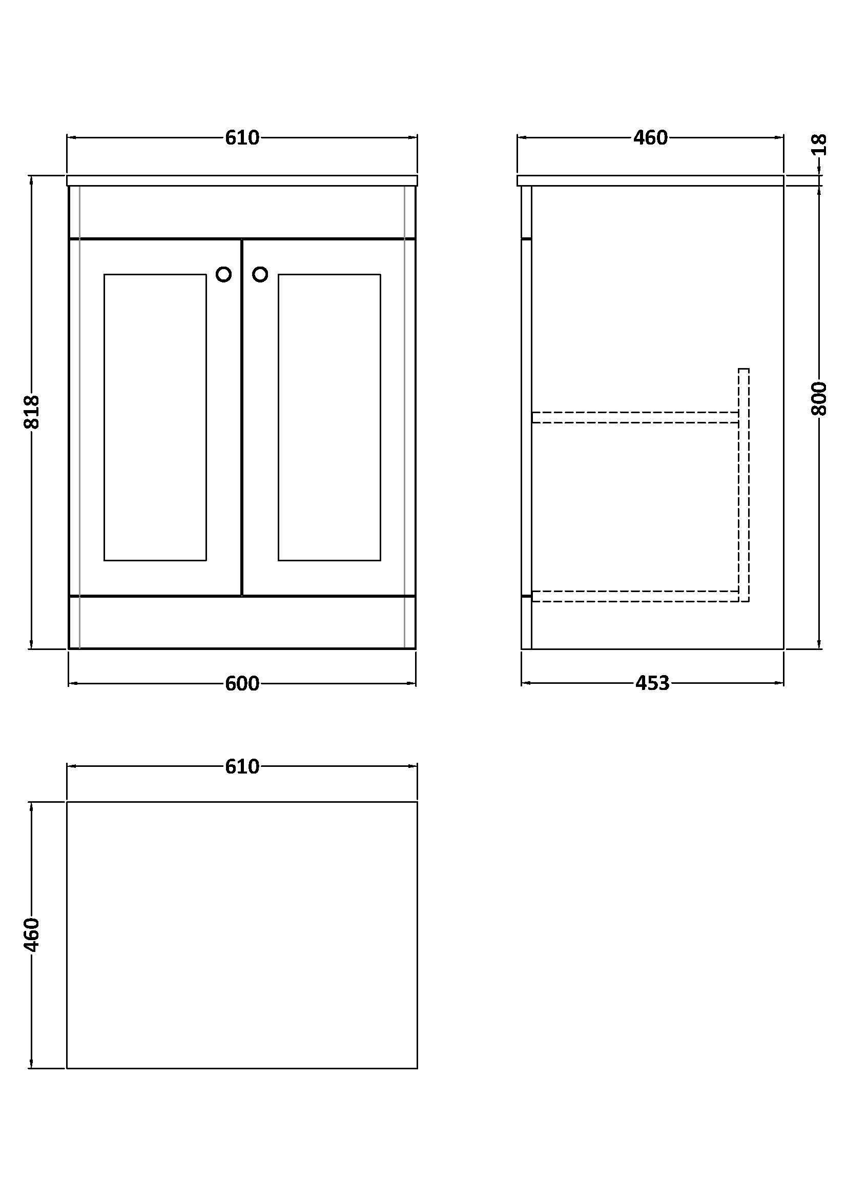 600mm Floor Standing 2-Door Vanity with Marble Top
