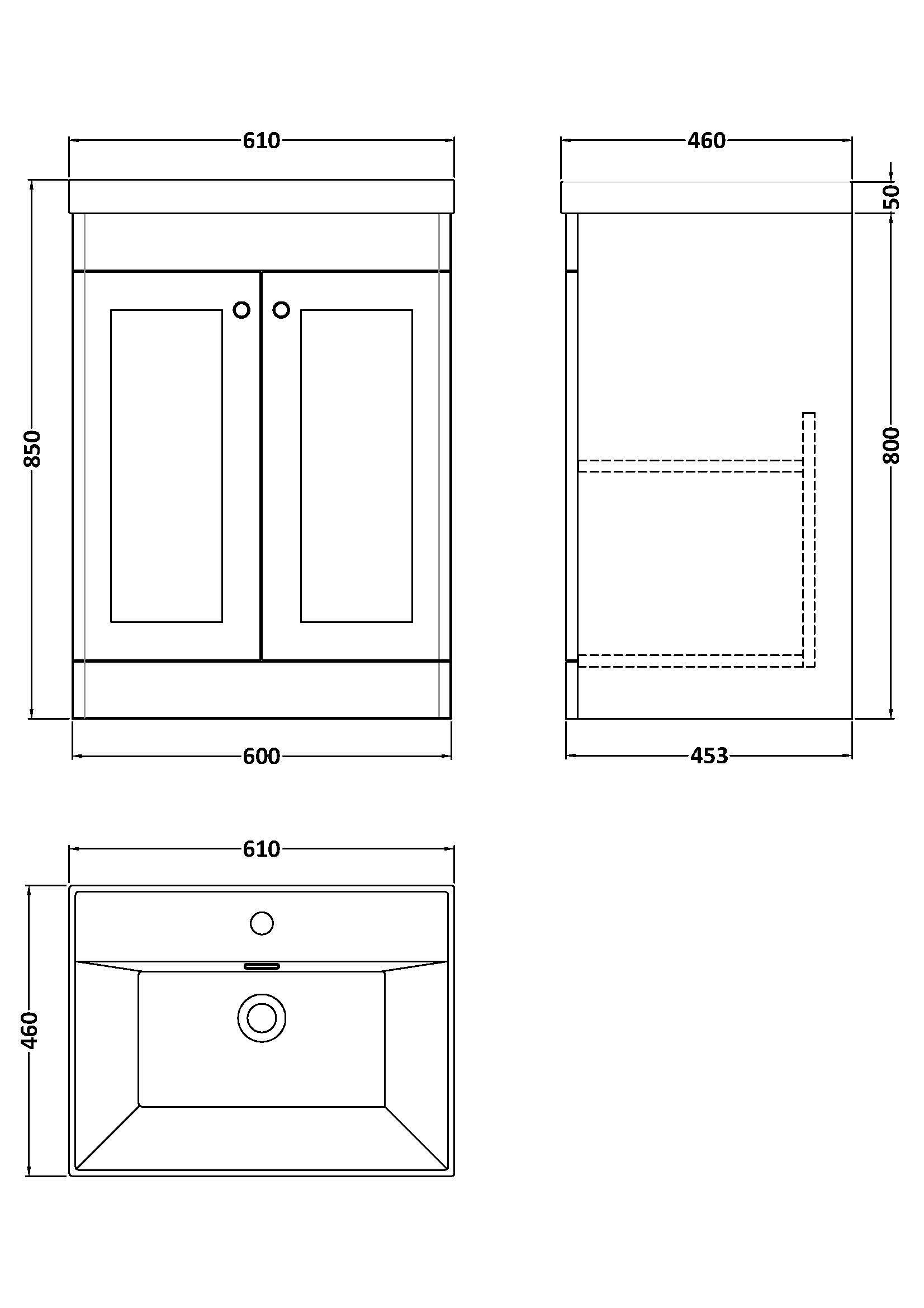 600mm Floor Standing 2-Door Vanity with Basin - 1 Tap Hole