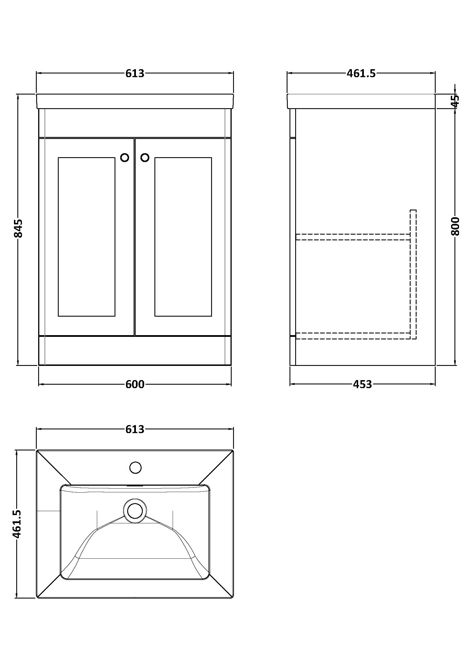 600mm Floor Standing 2-Door Vanity with Basin - 1 Tap Hole