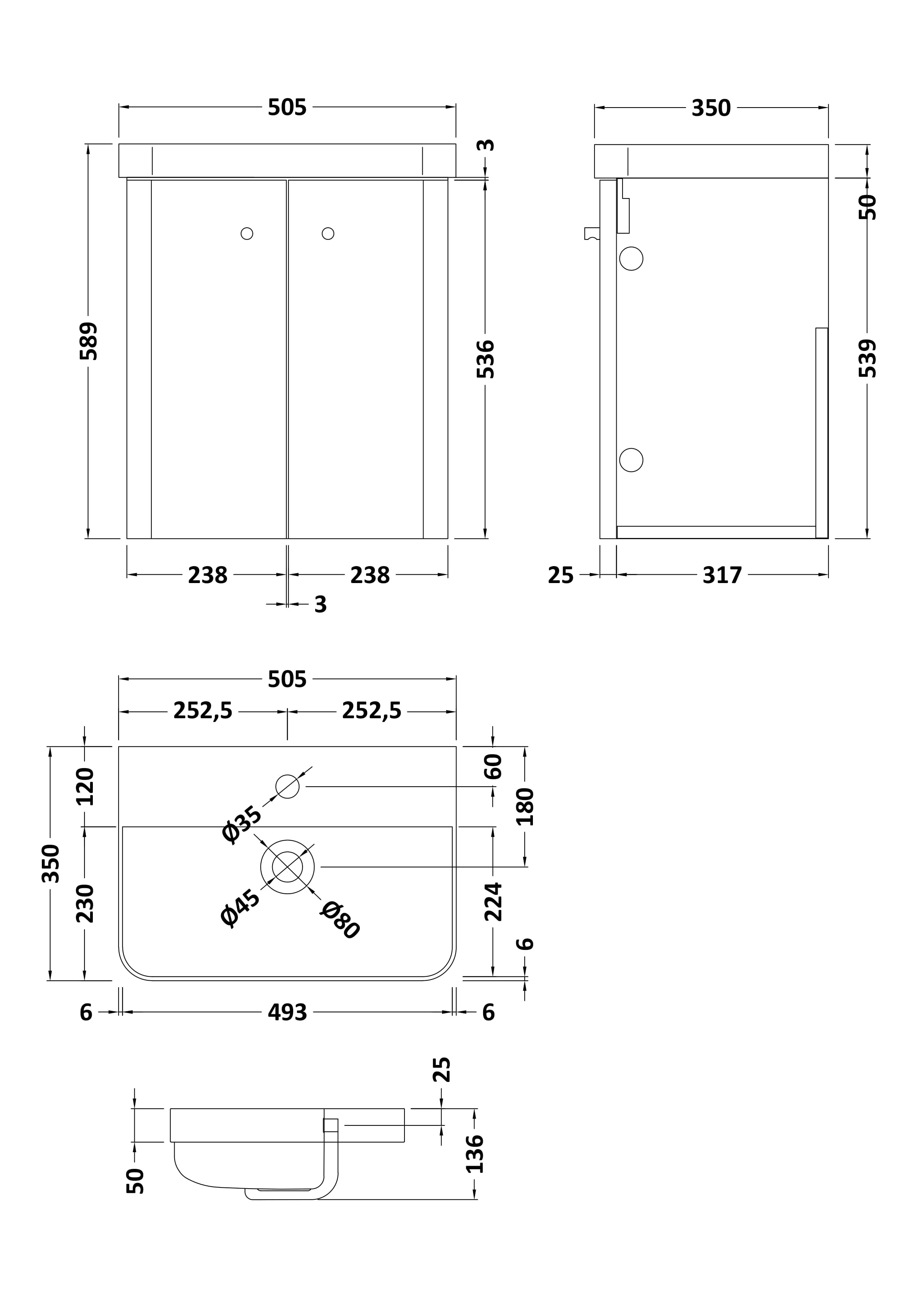 500mm Wall Hung 2 Door Unit & Basin by Ultra