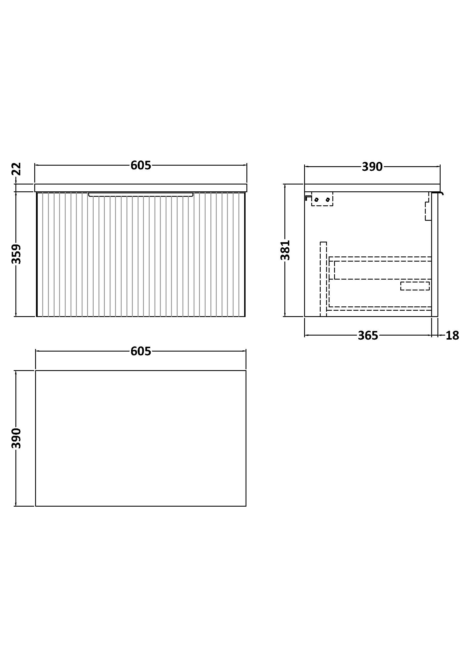 600mm Wall Hung Single Drawer Vanity & Laminate Top