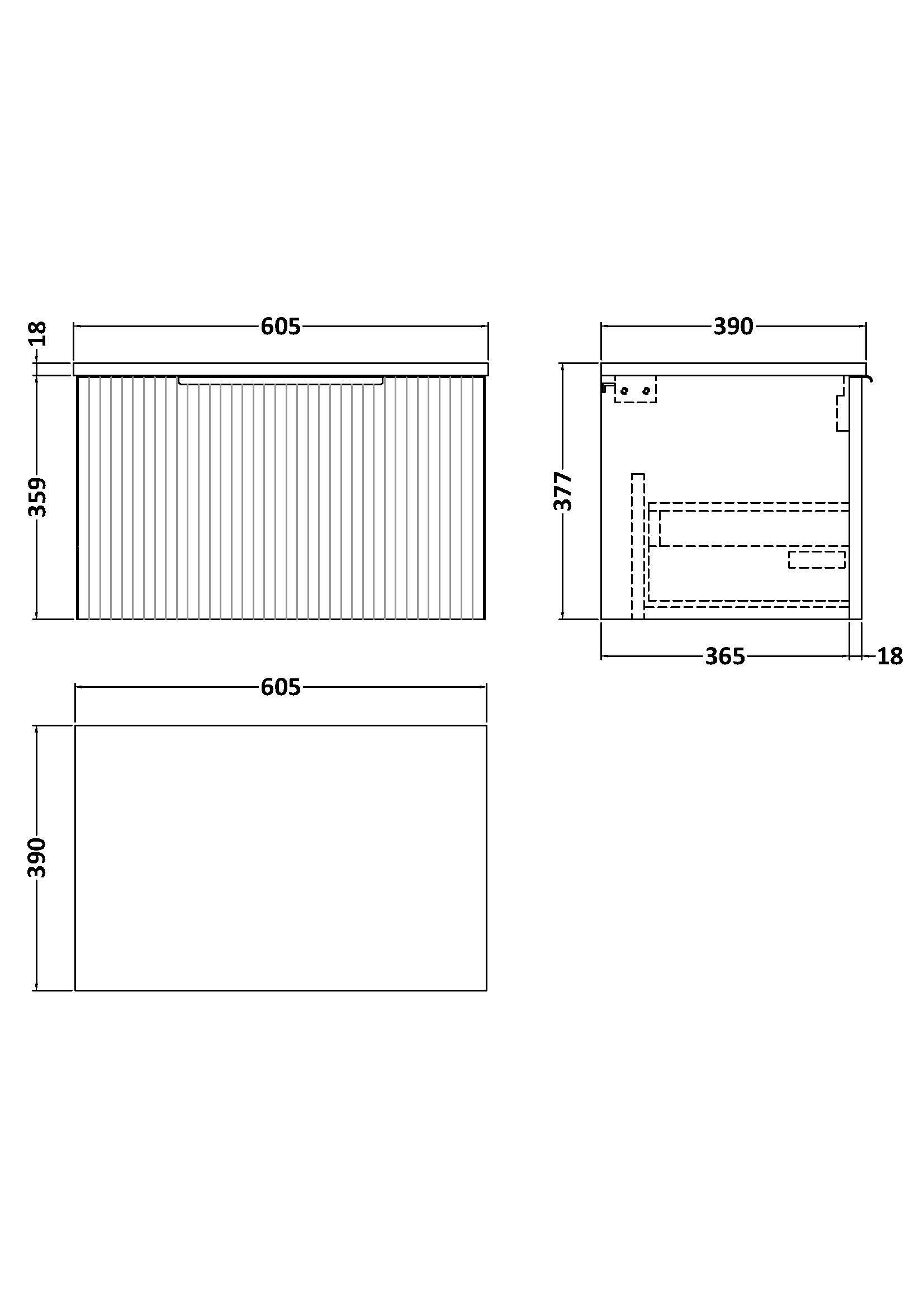 600mm Wall Hung Single Drawer Vanity & Worktop