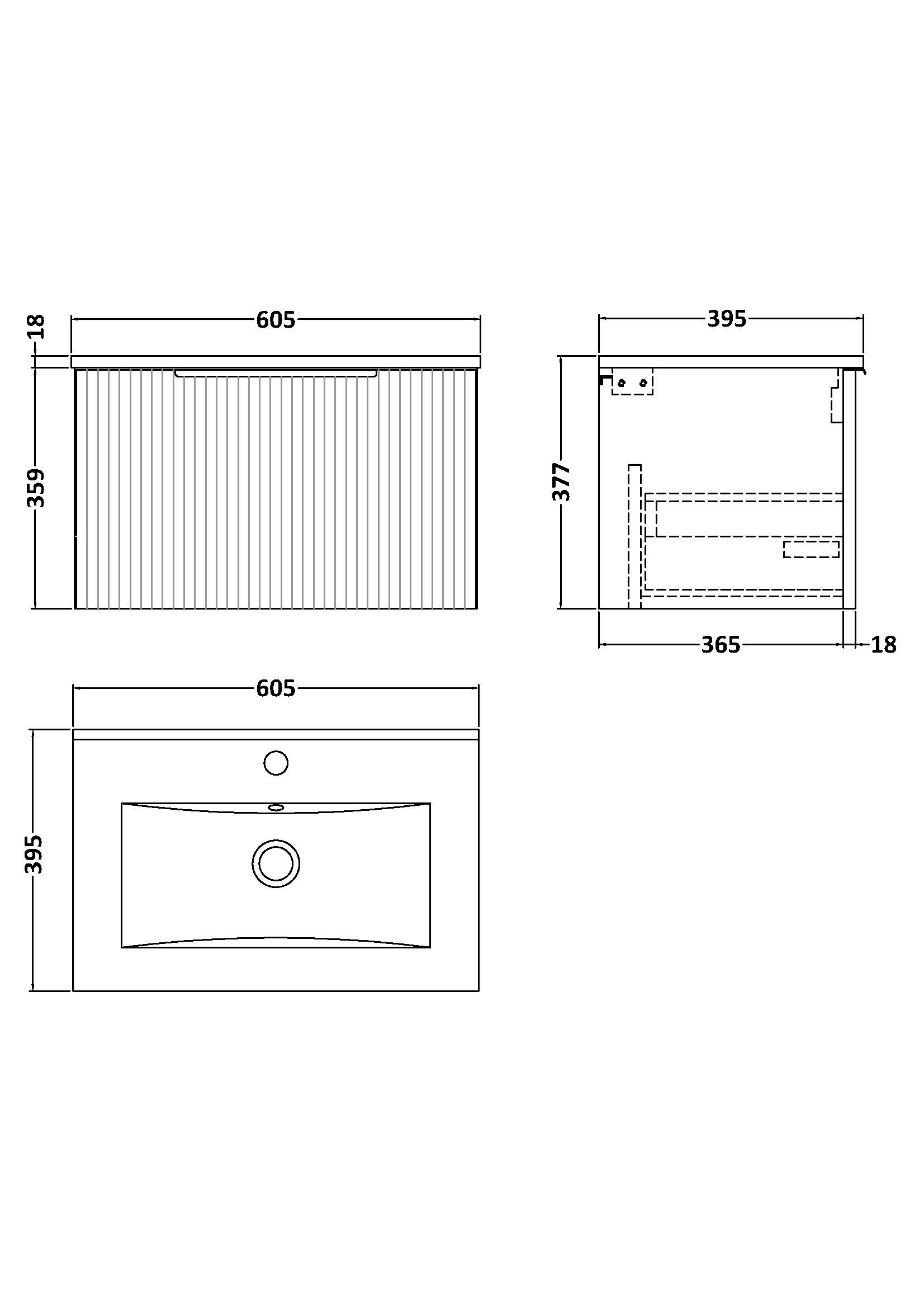 600mm Wall Hung Single Drawer Vanity & Basin 2