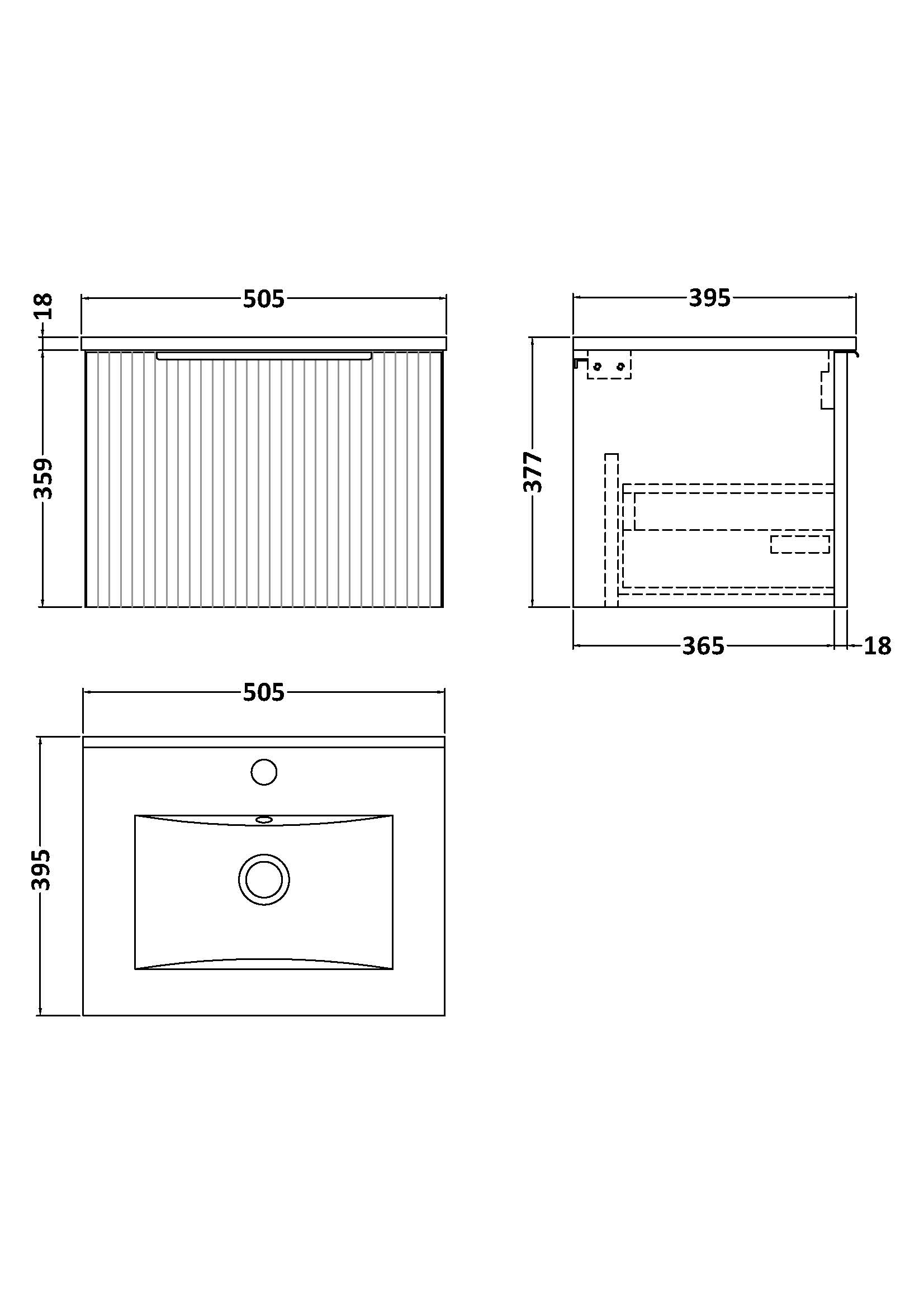 500mm Wall Hung Single Drawer Vanity & Basin 2